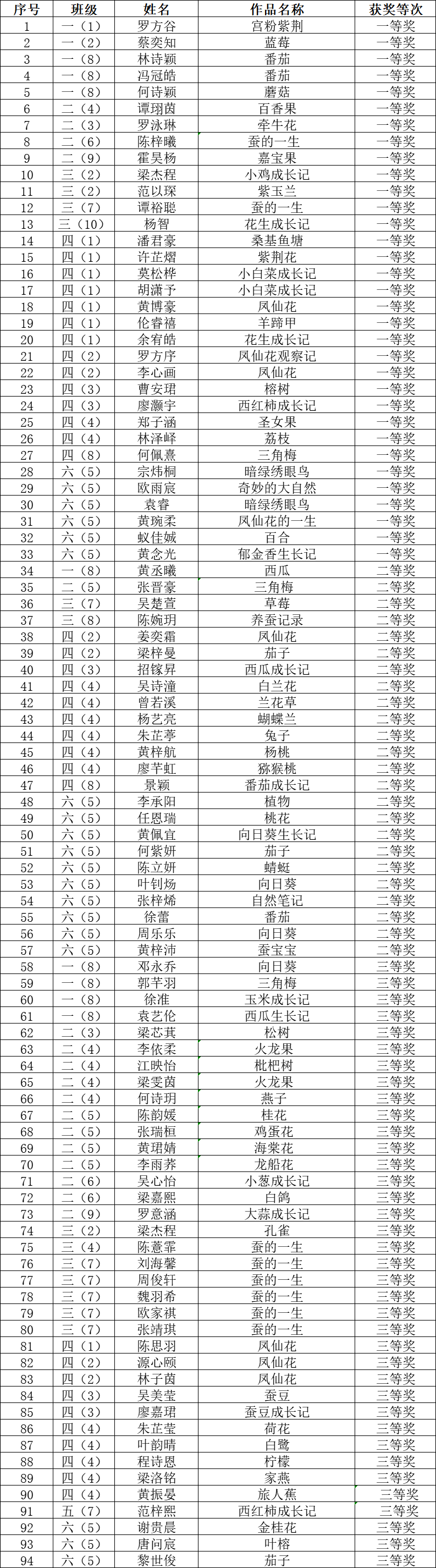 获奖名单
