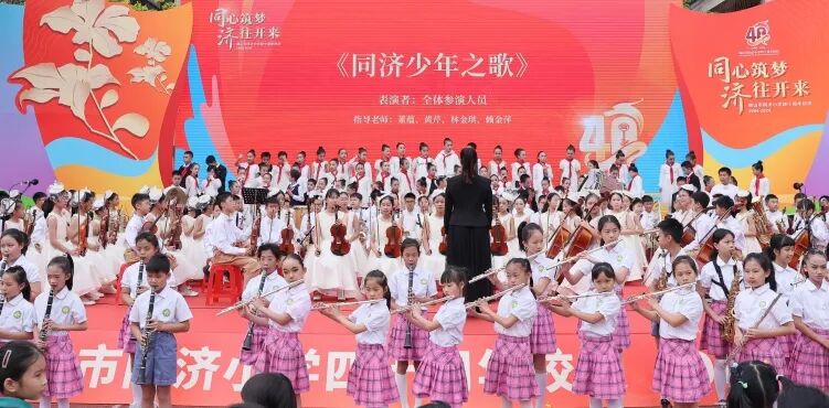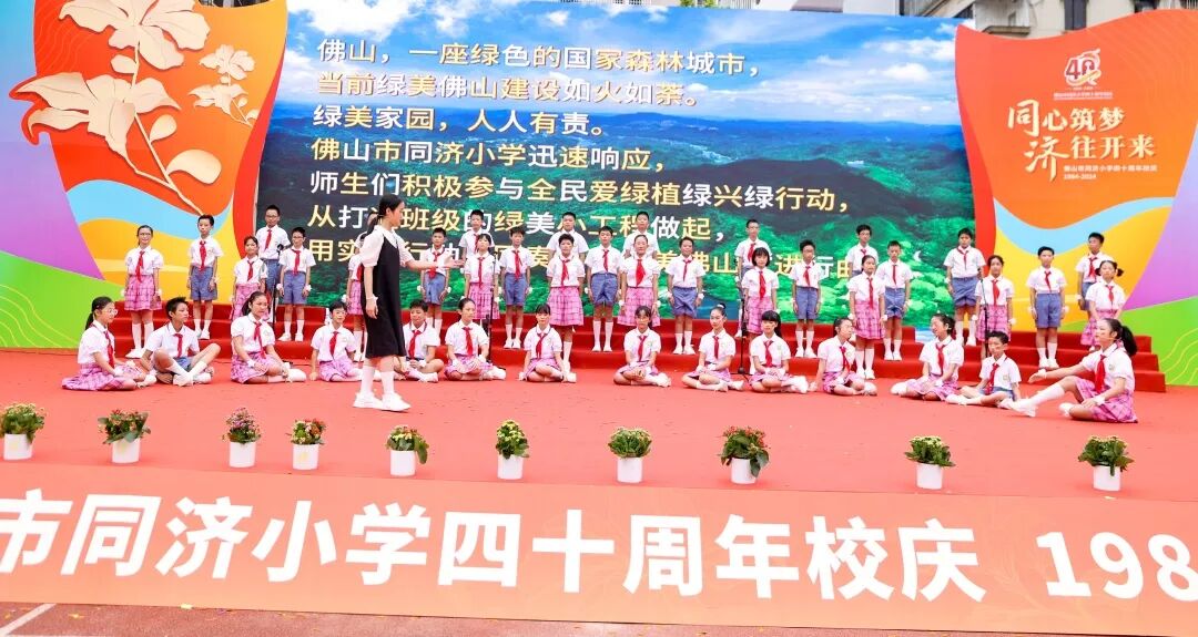 活动伊始,佛山市同济小学校长陈建平代表学校致辞,追忆过去,深情回顾学校自1984年创立以来的光辉历程。展望未来,同济小学将以此次校庆为契机,秉持同心共济、守正创新的精神,努力把学校办成童心相连、师生同济、品质高尚的南粤示范学校,谱写辽阔教育蓝图。