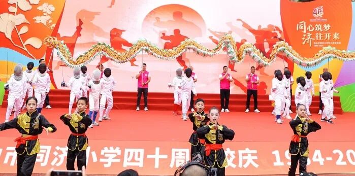 除了教育局、武警部队、科协、祖庙街道、社区领导,历任校级领导、香港姊妹学校、各兄弟学校、幼儿园的领导、副校长顾问代表、退休教师代表也莅临现场,还有同济小学校友、媒体朋友、友好合作单位代表、家委代表们,宾朋相聚,校园内外热闹非凡。