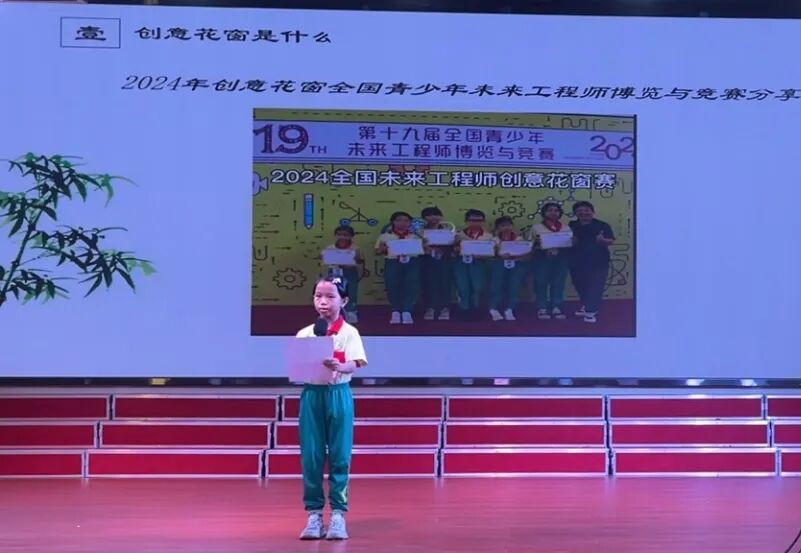 活动邀请了第十九届全国青少年未来工程师创意花窗一等奖代表,六年5班的袁睿和三年9班的梁馨瑜同学分享了在参与“创意花窗”创作过程、参赛及获奖感悟。她们在把“创意”变成“花窗作品”中体验了挑战与喜悦,不但促进了个人成长,也锻炼了团队合作能力,提现了“创意花窗”课题对学生综合素质全面发展的积极影响。