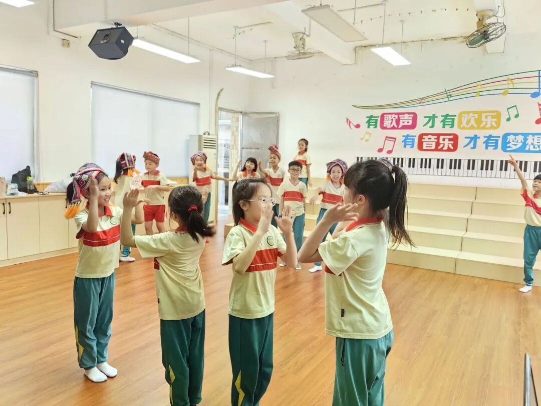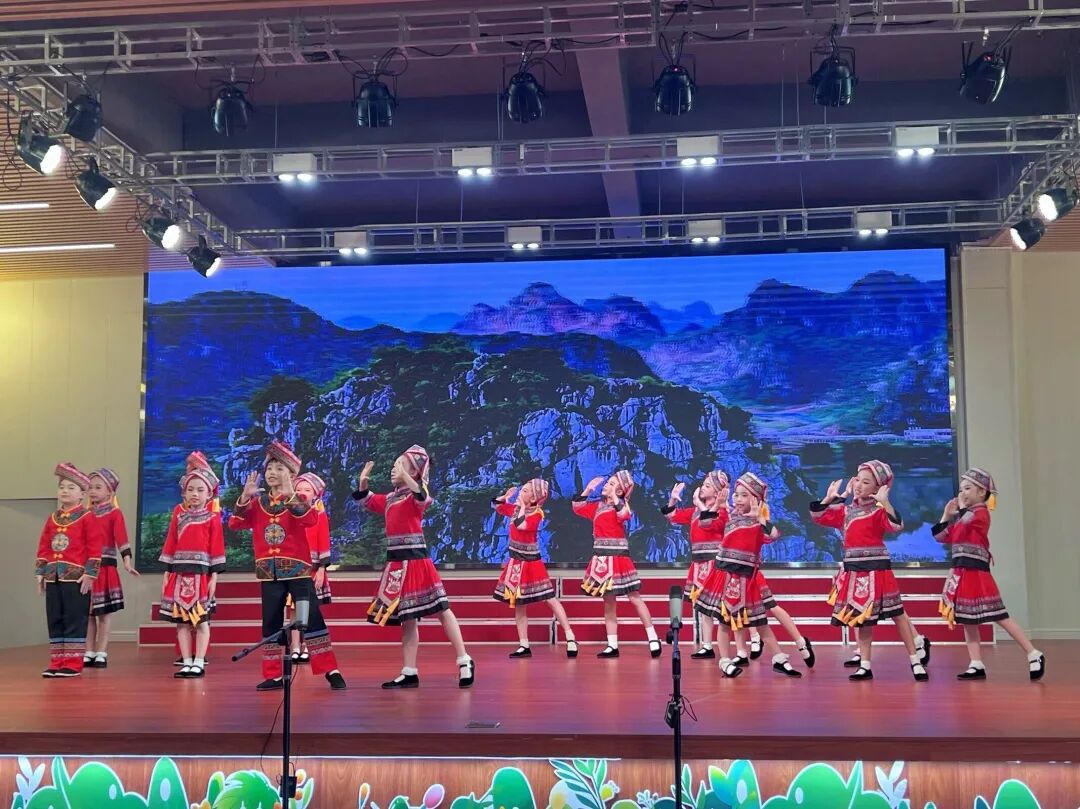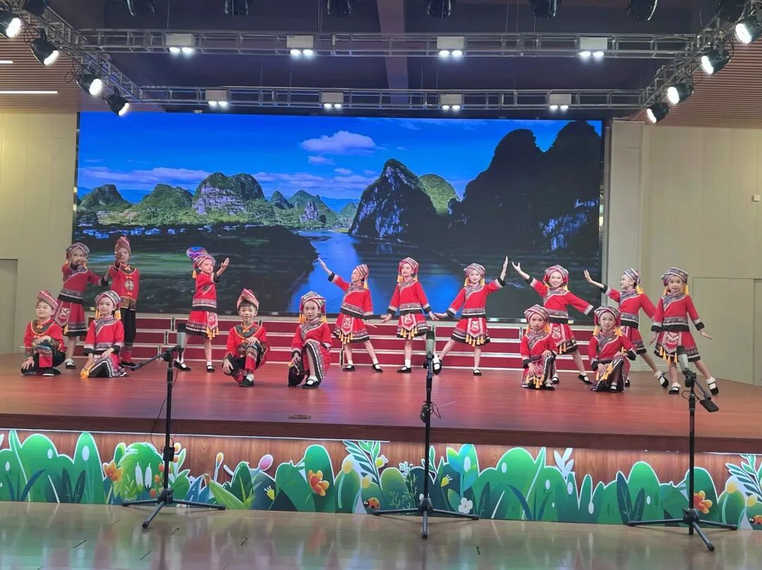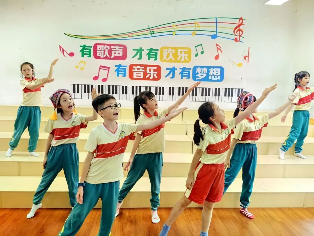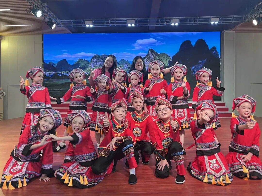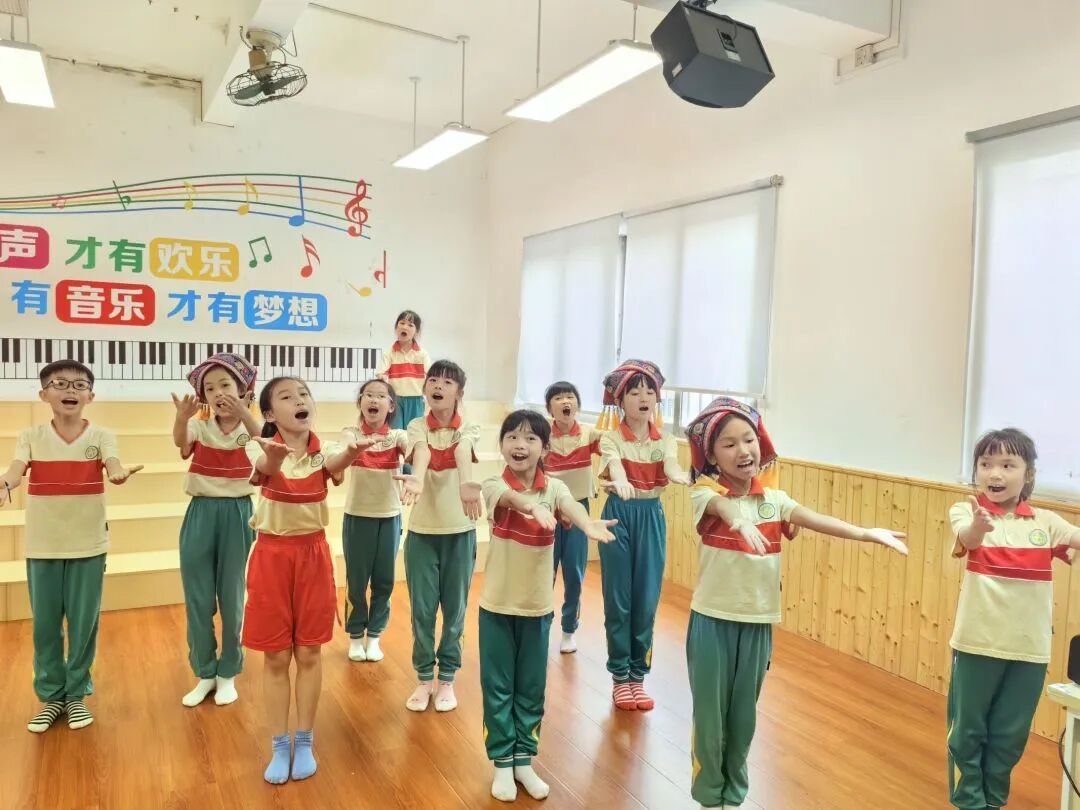 我校于2022年被评为“声乐试点校”,“童心”小歌手是我校的特色社团。本次小歌手队伍的十五位成员分别来自二、三、四年级,队员们年龄虽小,但是舞台经验丰富,曾多次参加校内外演出及比赛,均获佳绩!本次展演的表演唱作品《壮歌声声啊嘞嘞》,是一首典型的壮族民歌,小歌手们通过美妙的歌声,灵动的舞蹈动作,靓丽的服装,诠释着壮族人民热情好客,能歌善舞的民族特色!