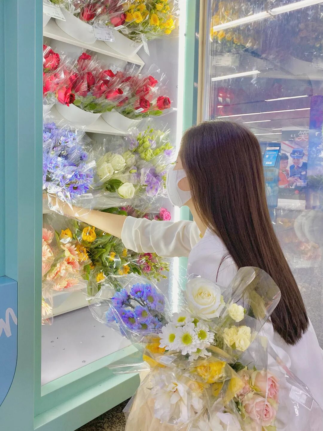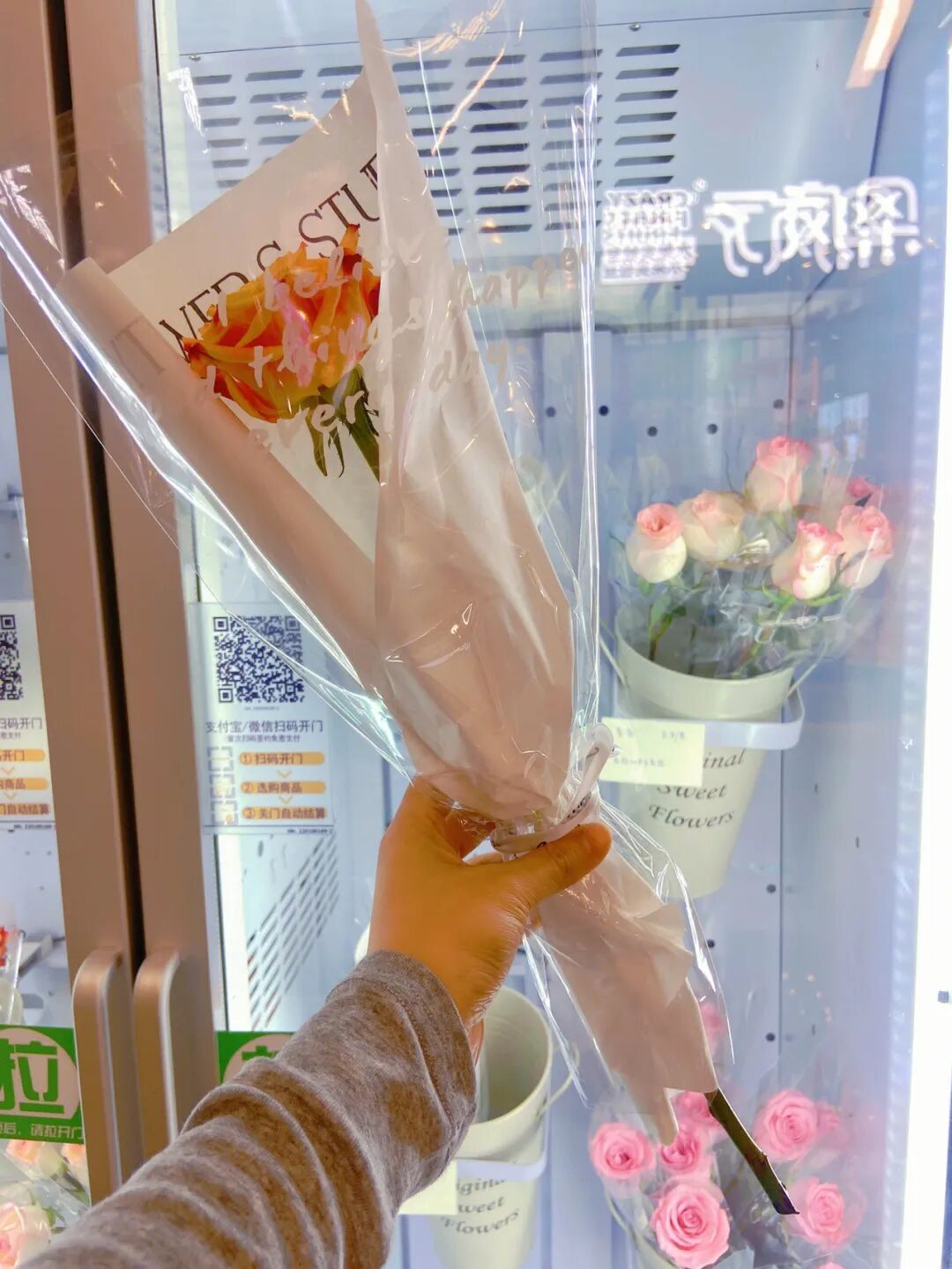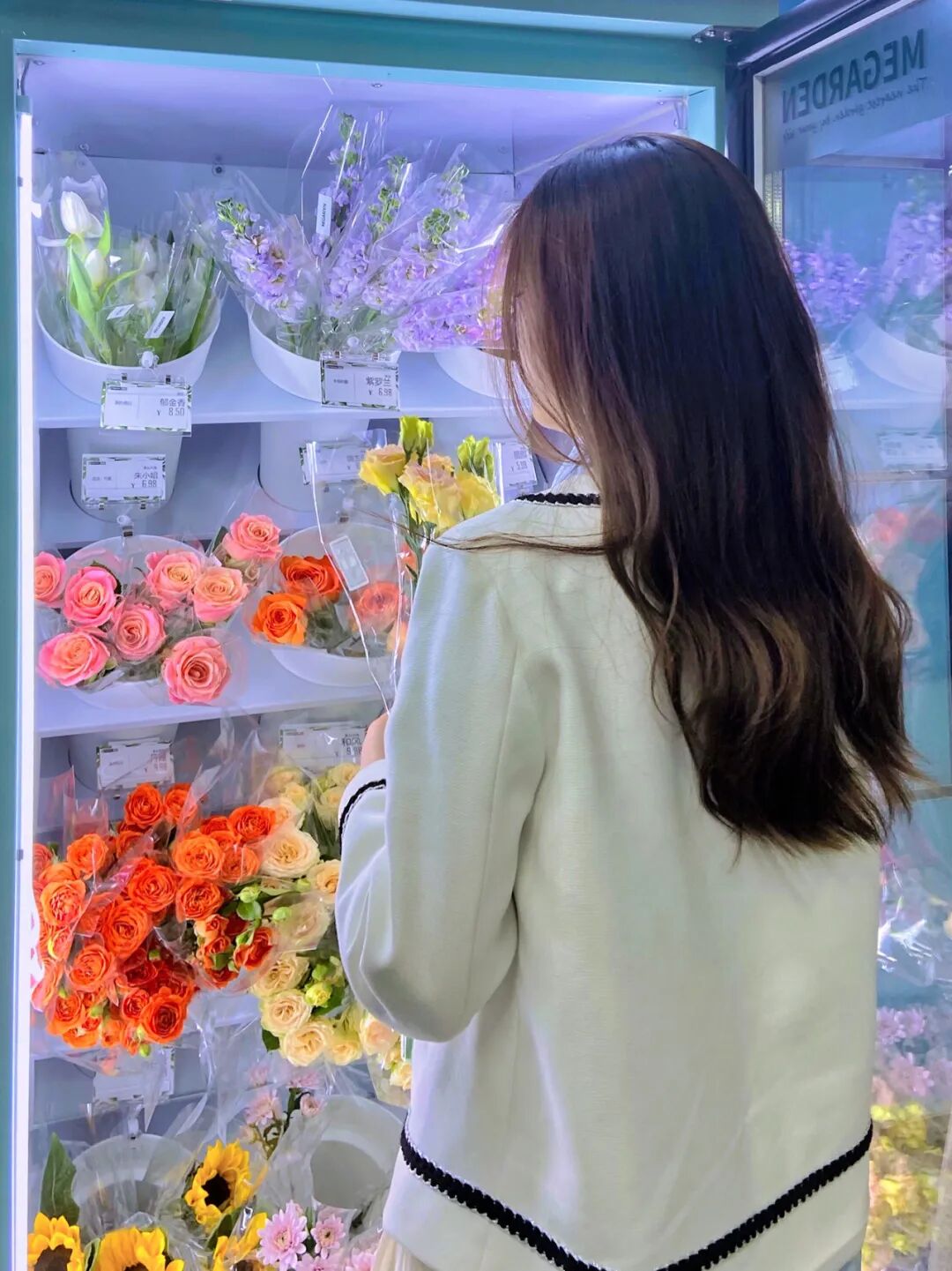 摘要:临近出口的位置,摆放着一台自助鲜花贩卖机,既有赴约时的期待,也提醒着匆匆路过的人,生活有时候也需要一束花的仪式感。