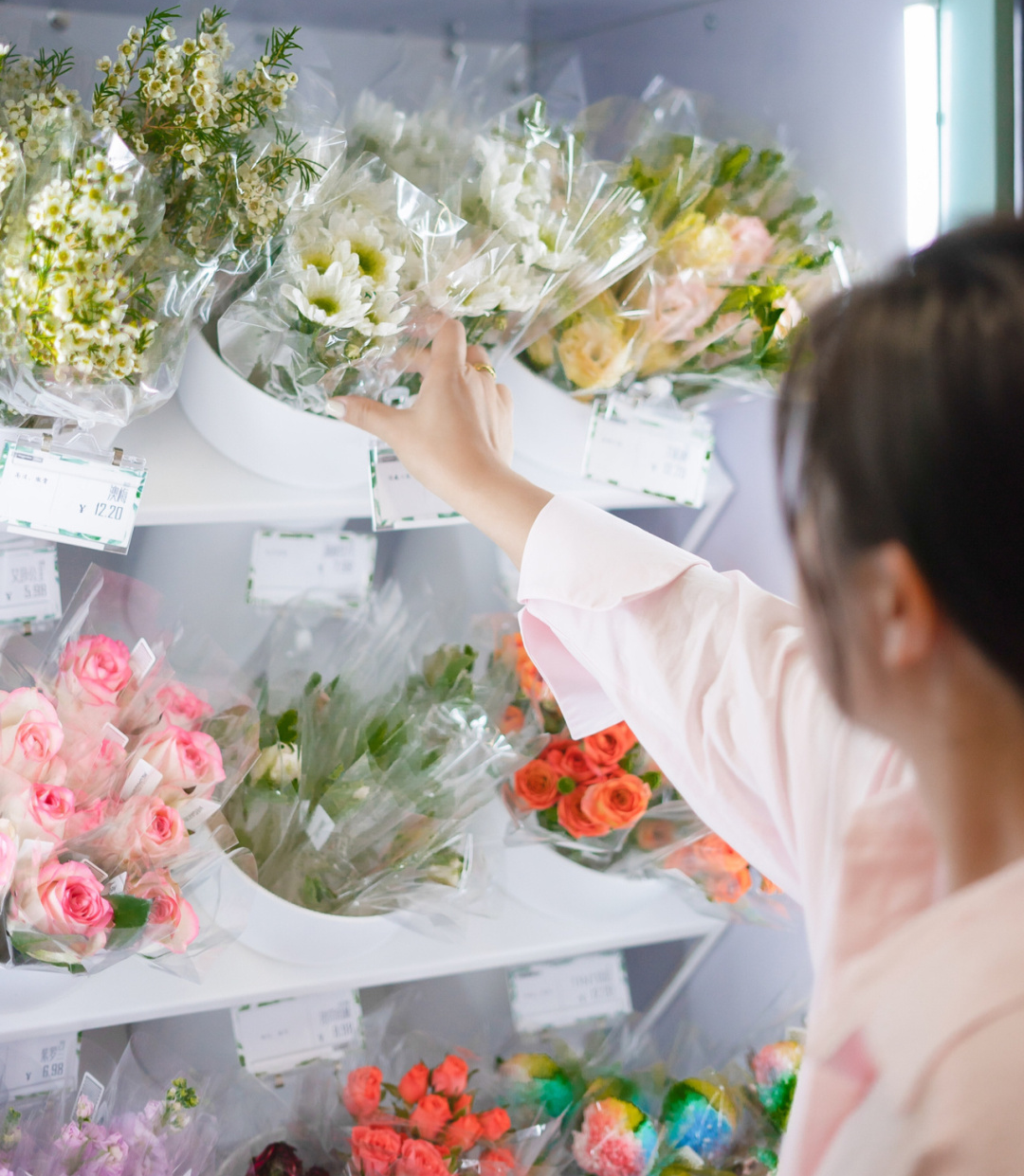 下午五六点,是鲜花自助贩卖机最热闹的时候,人来人往,鲜花机形成的小空间,为需要浪漫的人带来日常的小惊喜。