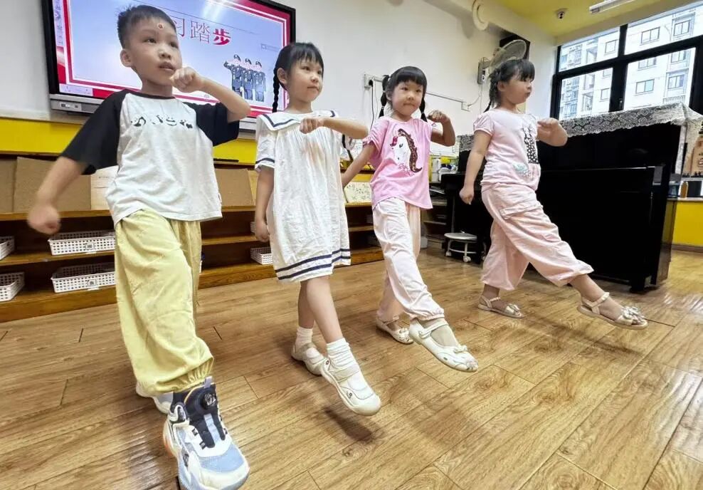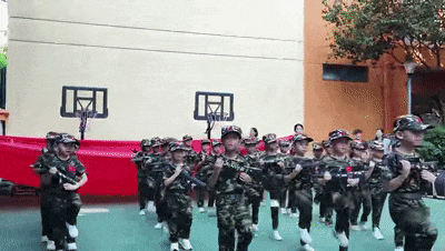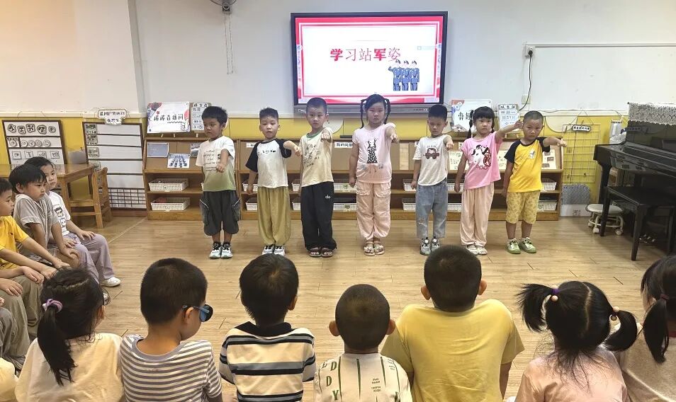 他们学着敬军礼、走队列。