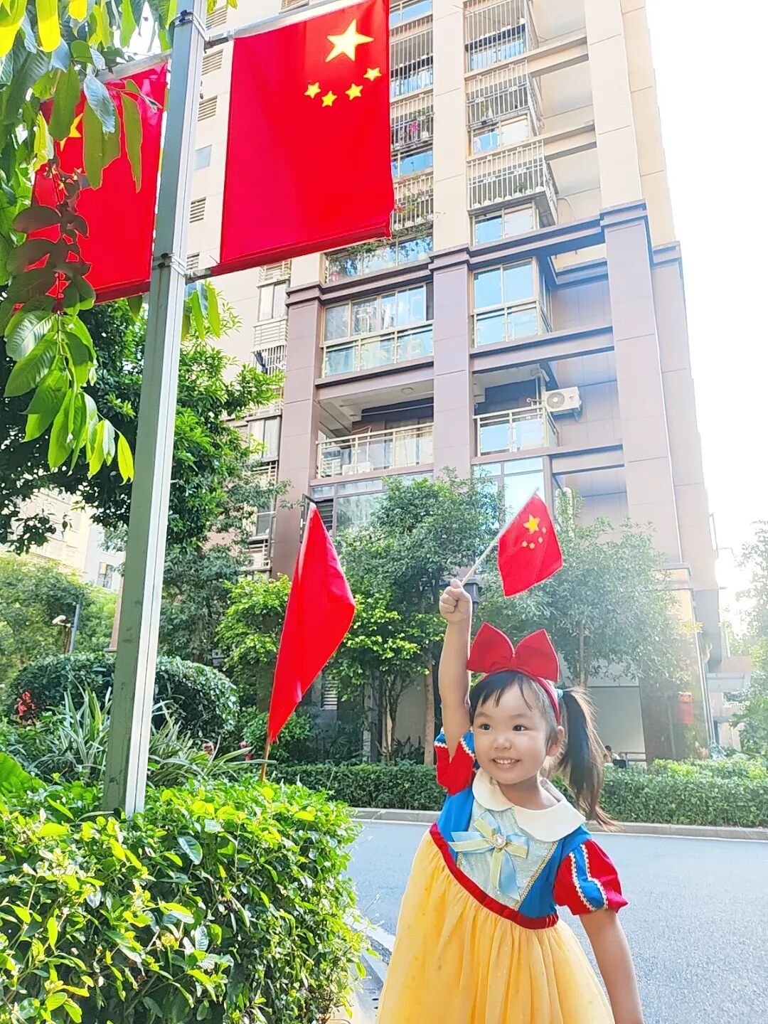 飘扬的五星红旗映照心田。