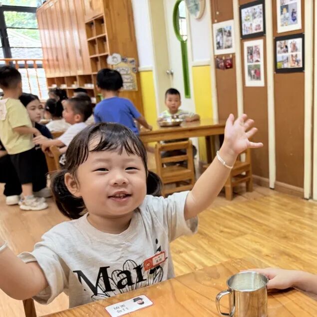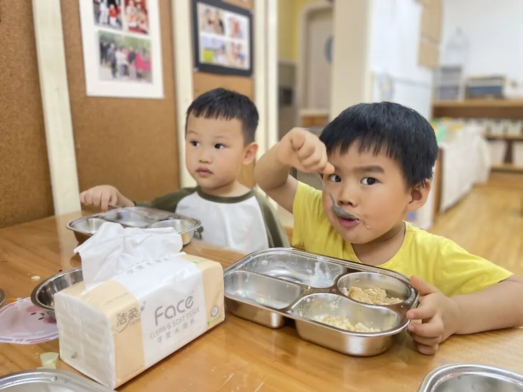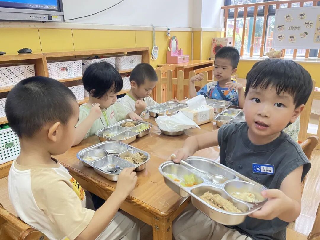 “幼儿园的饭菜太好吃啦,我还要添一碗。”