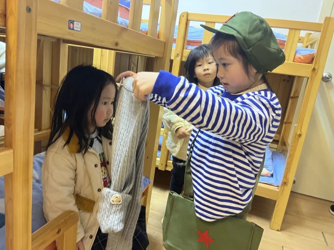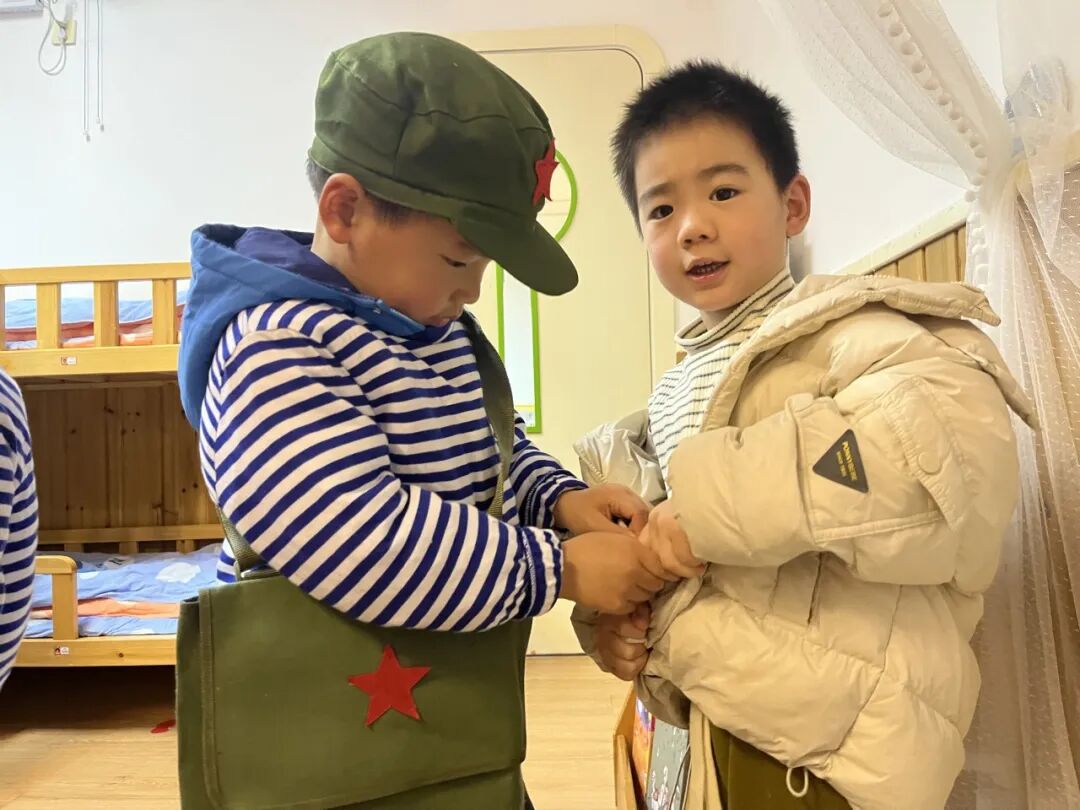 为弟弟妹妹换装时细心系好每颗纽扣,