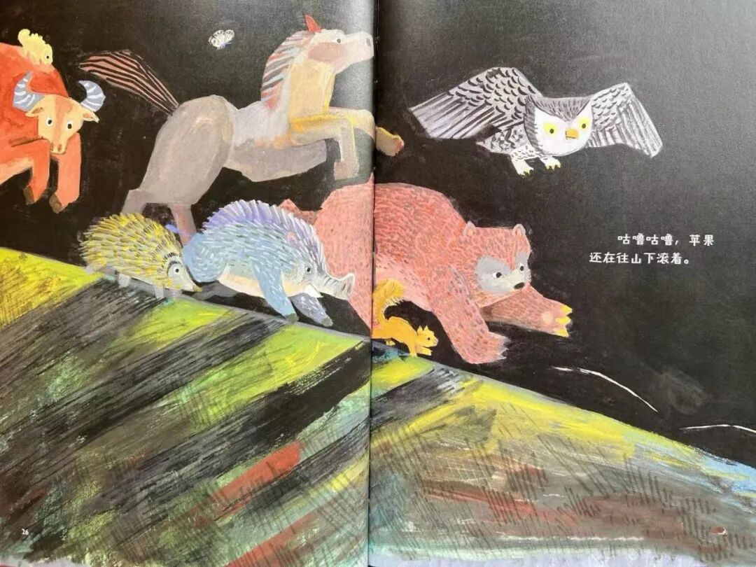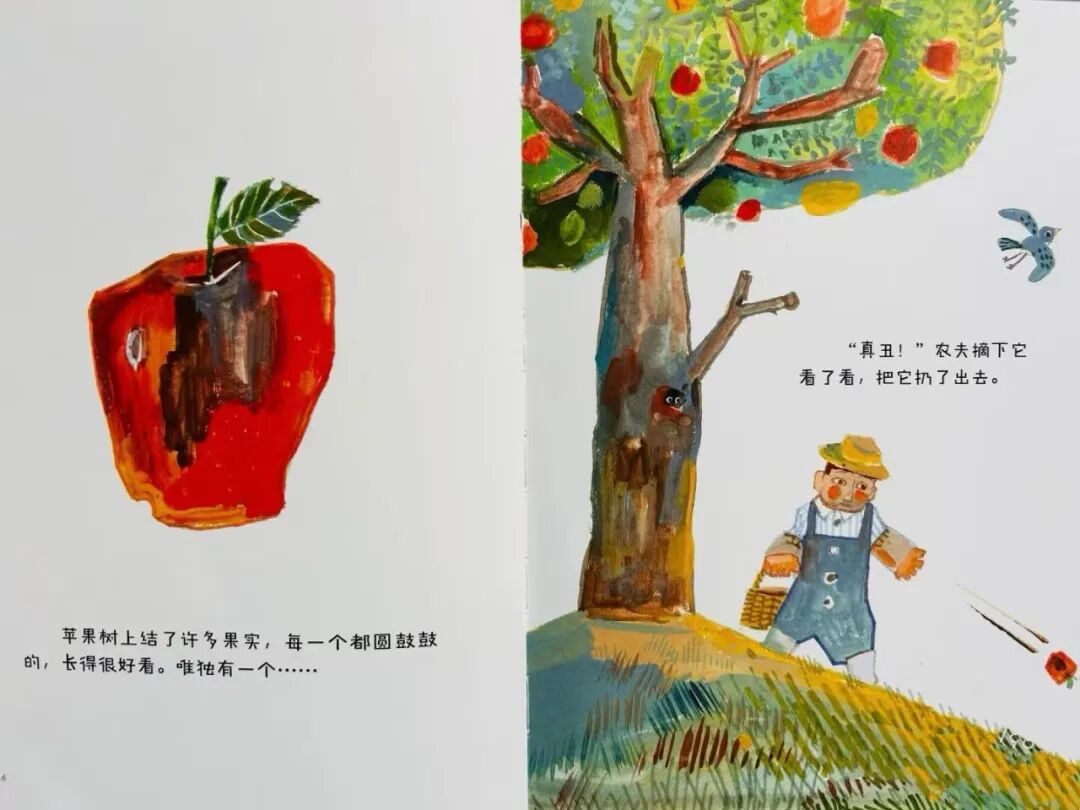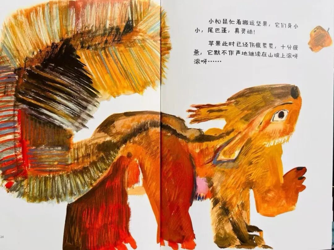 一个烂苹果被农夫嫌弃地扔下了山坡,不断滚动的烂苹果看到了一只花蝴蝶、两只变色龙、三匹棕毛马、四只猫头鹰、五只小松鼠,烂苹果羡慕它们的光鲜亮丽,对自己十分沮丧,最终,它摔入泥潭里...