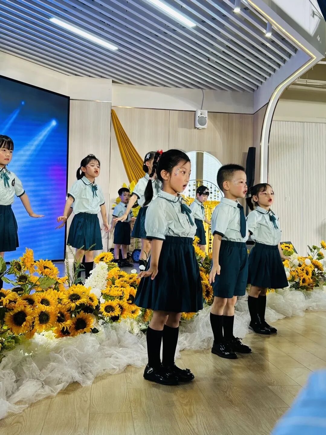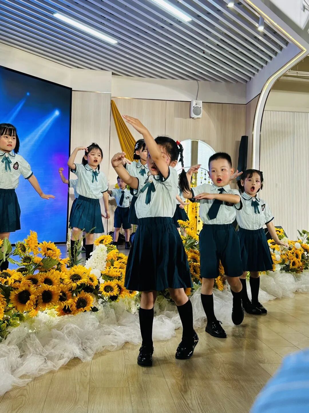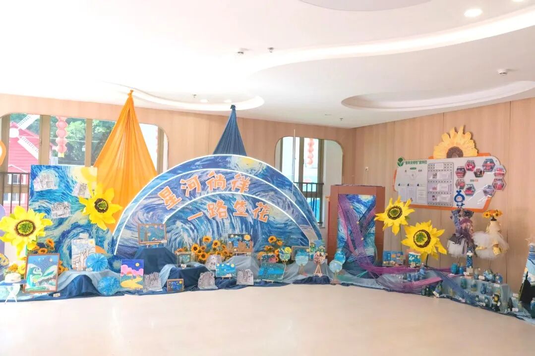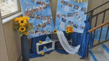 老师将我们提议的梵高的《星空》与《向日葵》揉进布置里,每个角落都在诉说毕业的璀璨。