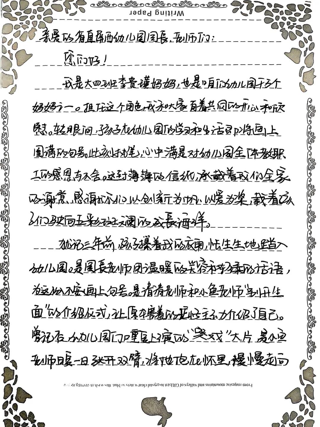 大四班的李贵瑾妈妈,把这三年的认可,一笔一画写进书信里,化成一份沉甸甸的感谢。