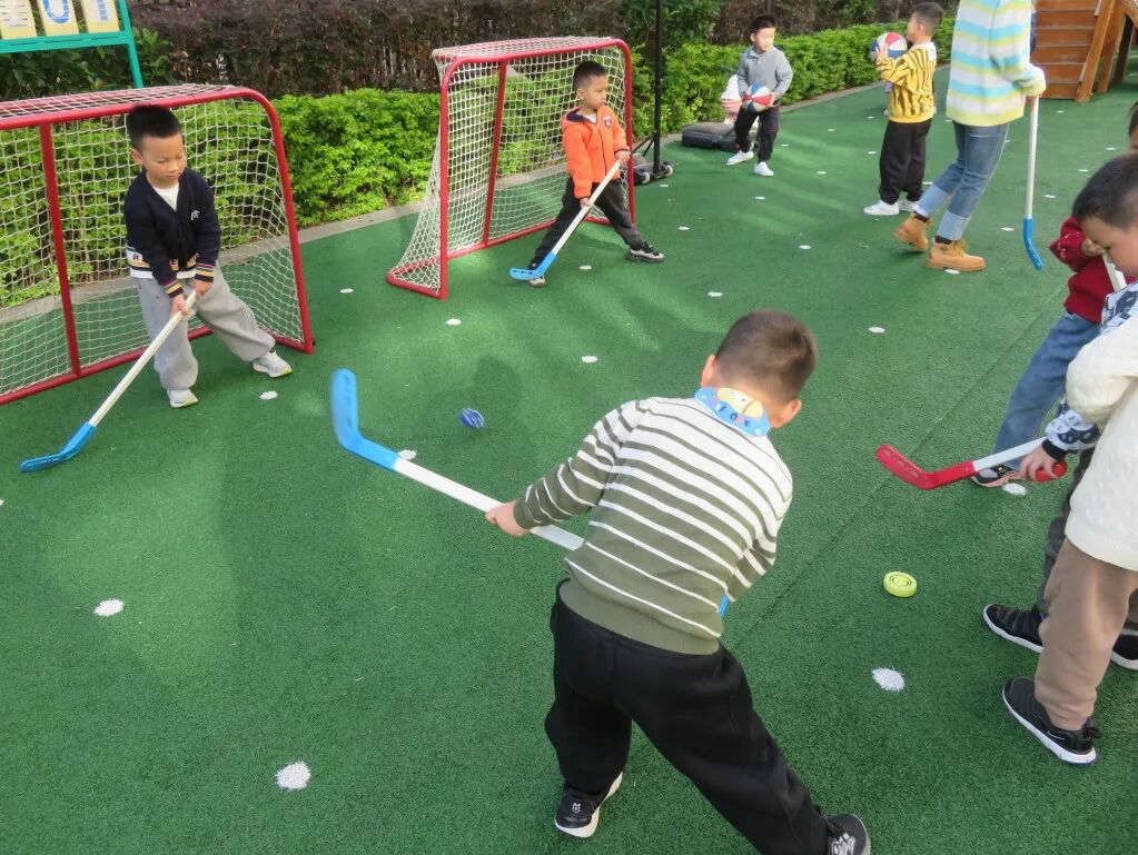 在曲棍球俱乐部,挥杆击球……