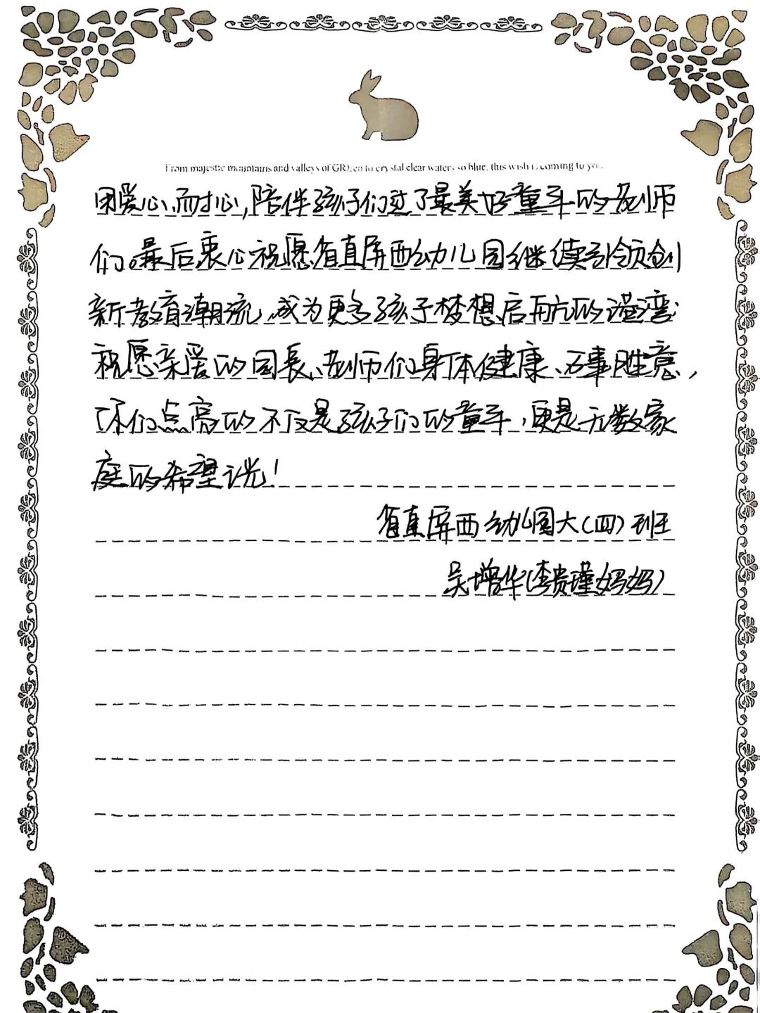 大一班的郭俊麟妈妈,把对幼儿园的眷恋、对老师的感恩,都写成了温暖的文字。