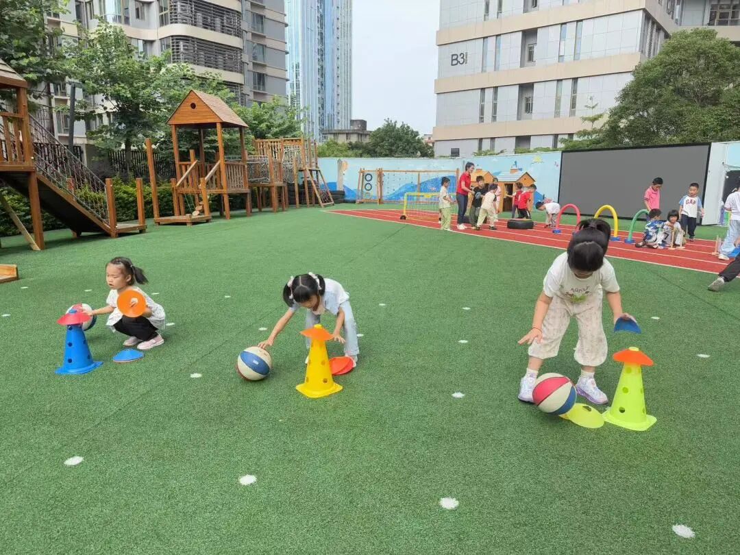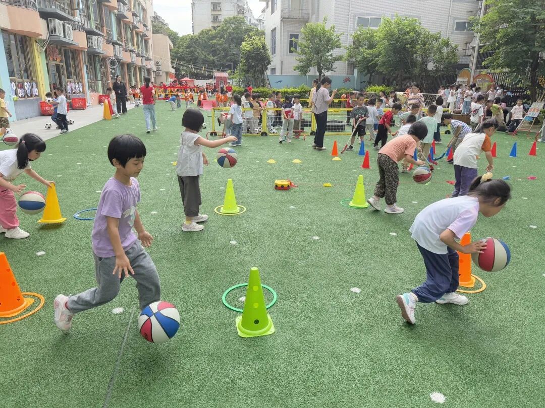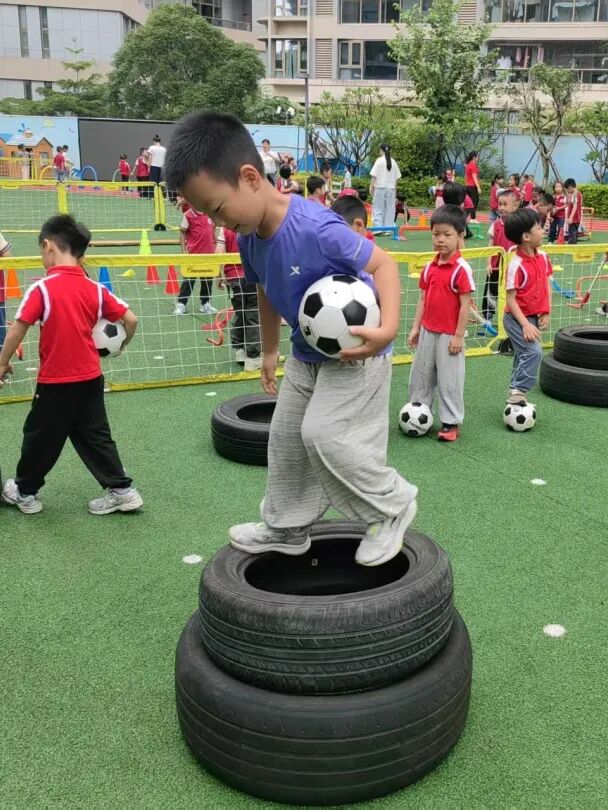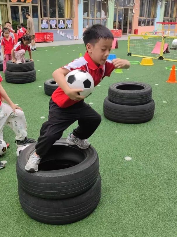 绿茵场上跃动童趣,我园特色足球活动将绕杆挑战、趣味射门等游戏融入训练,让孩子们在欢笑中爱上运动、玩转足球!