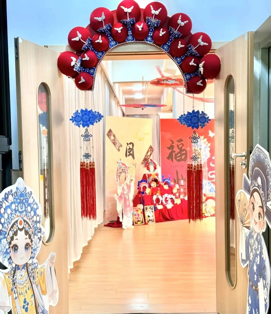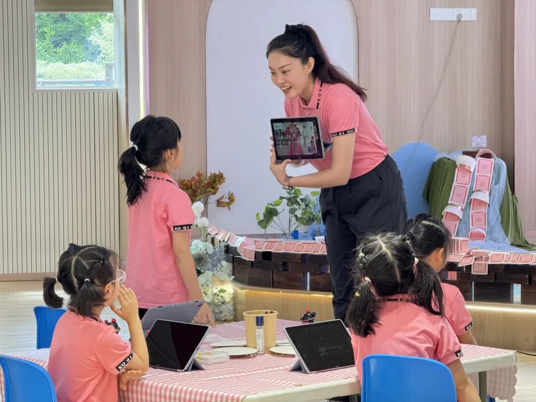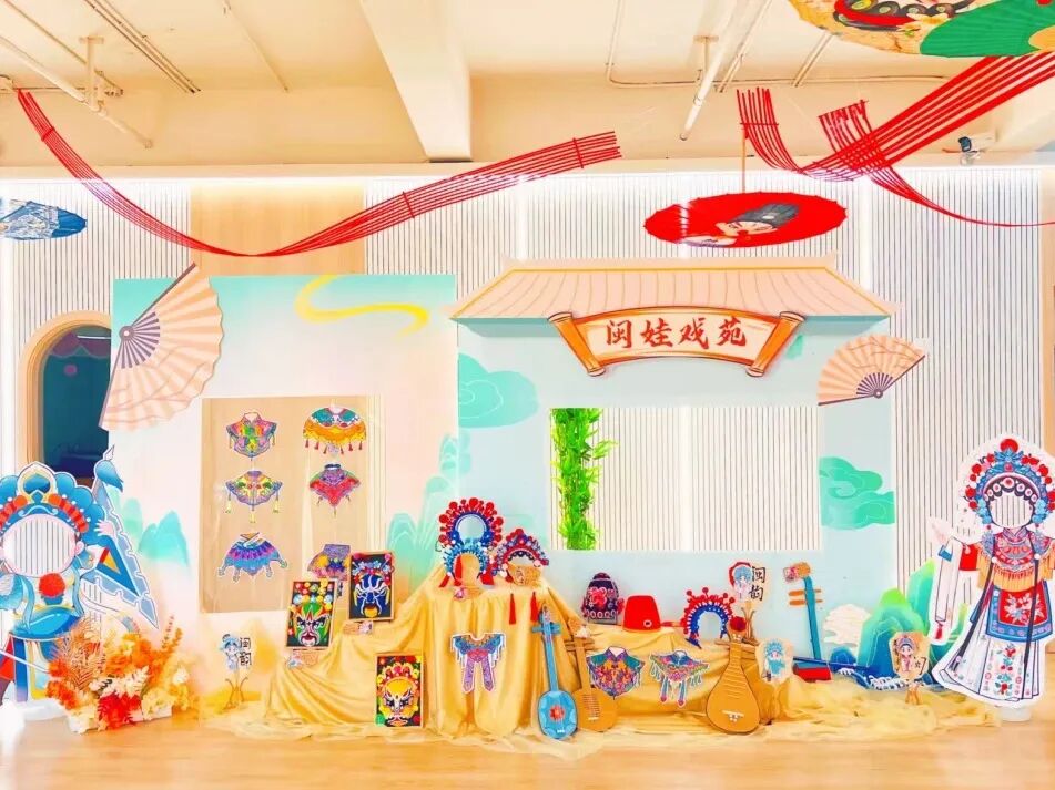 踏入二楼音体室,仿佛置身于戏曲世界。天福幼儿园的老师们沉醉于闽剧脸谱油彩里流淌的千年韵致,更醉心于传统艺术在孩童指尖绽放的鲜活生命力。