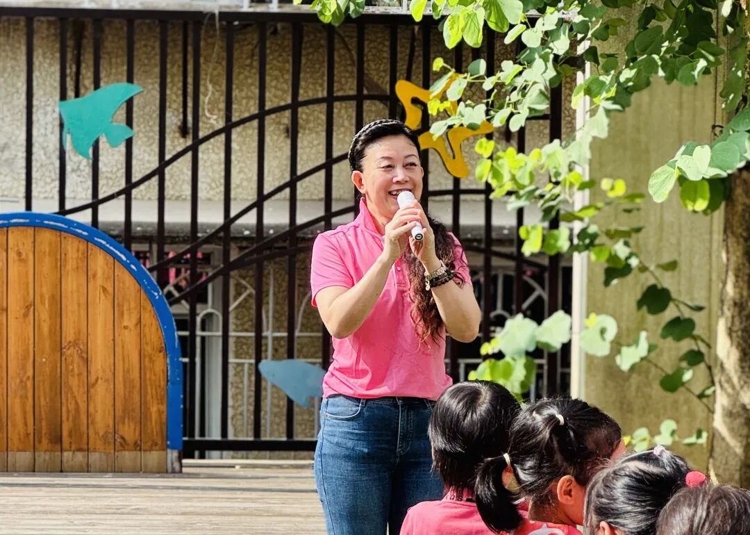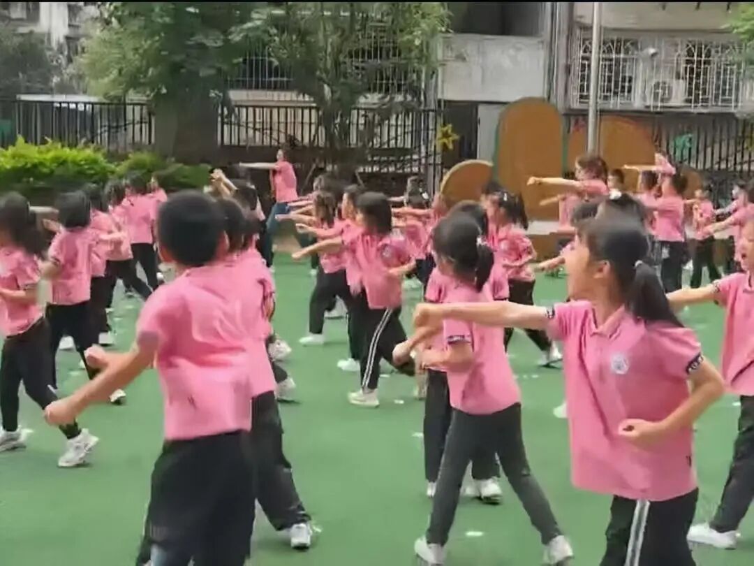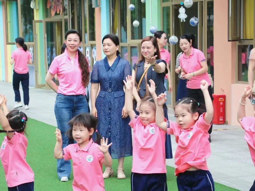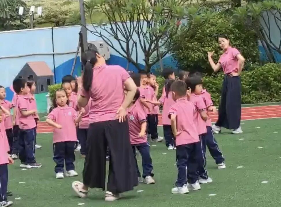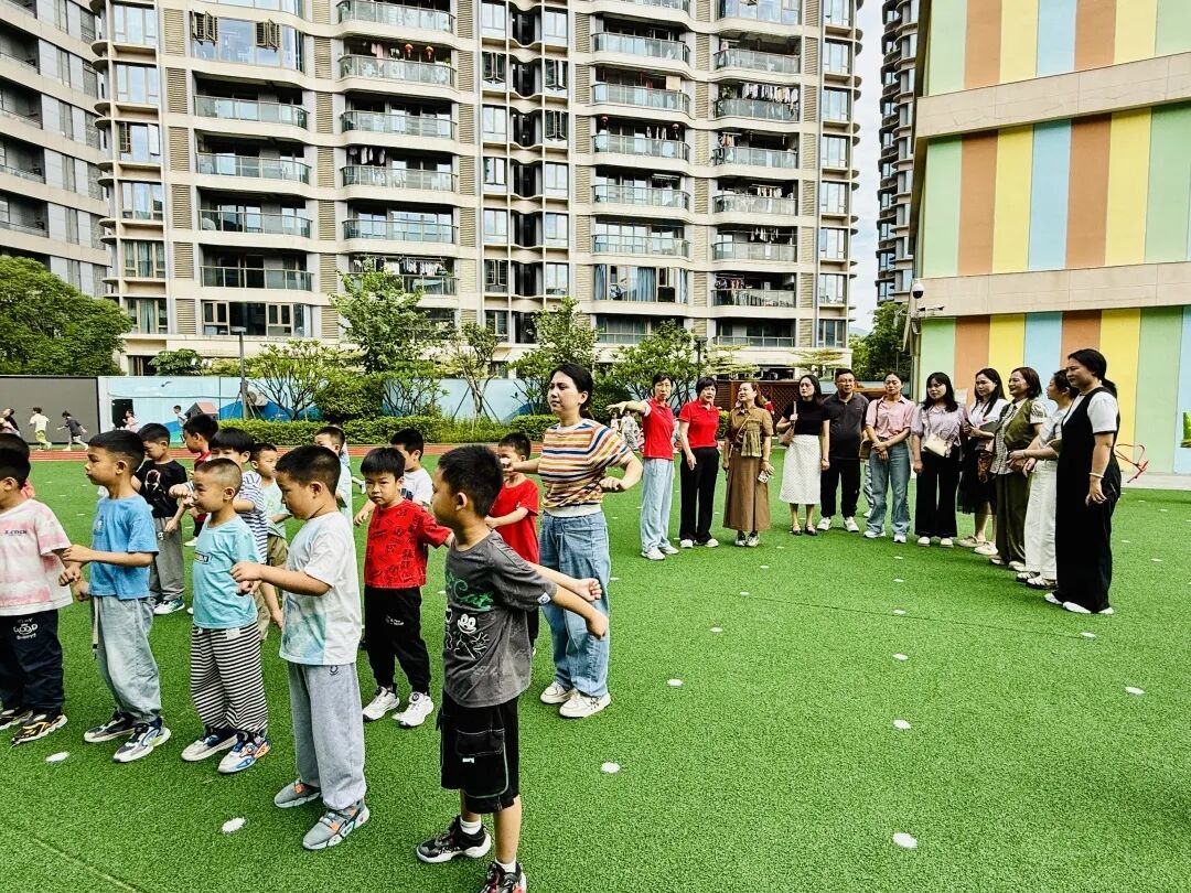 张洁园长带领重庆天福幼儿园的幼教同仁观摩孩子们的晨间户外活动,共同感受蓬勃朝气的花样早操。