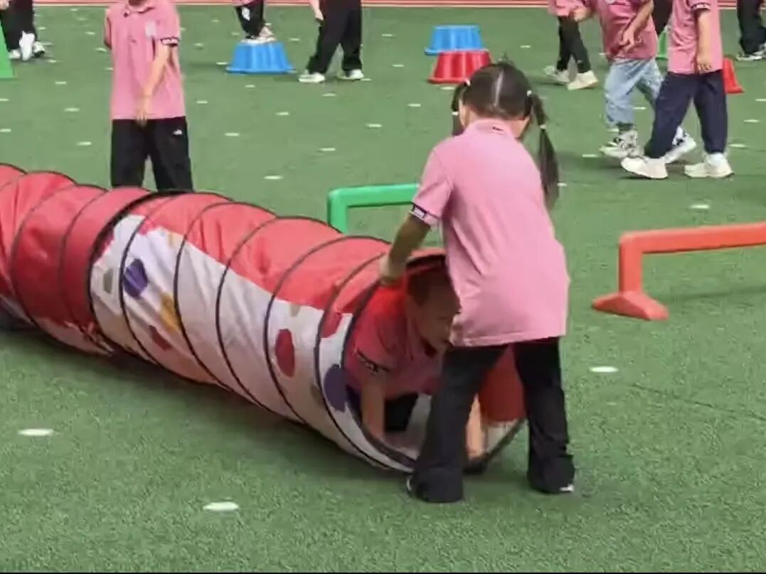 瞧,小班幼儿的“体能大循环”游戏闪亮登场,他们在趣味盎然的情境中攀爬、跳跃、钻行,稚嫩而协调的动作中透露出充沛活力与运动潜质。
