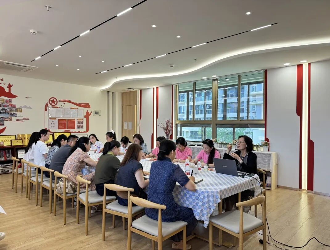 屏西幼儿园保健医生张焕玉就保育保健工作向天福幼儿园的同仁们进行分享。保育工作即是严谨的科学,更是充满温度的艺术。我园保育实践始终秉持"科学规范、精细育人"的准则,在幼儿健康监测(如动态档案管理)、保育员技能培训、分龄段习惯培养等方面形成体系化管理。同时,两所幼儿园在会上围绕如何建立体系化的保育工作畅所欲言,共同探索保育工作的精进之路。