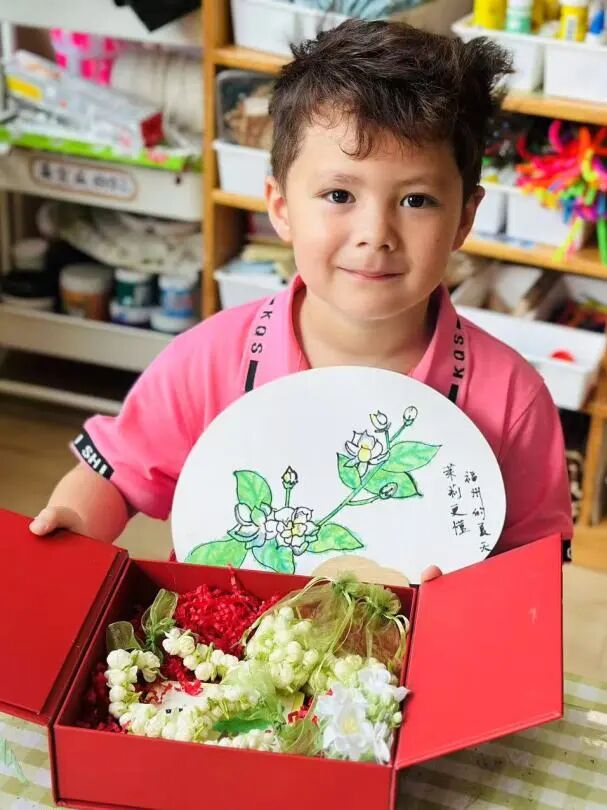 “客人老师,这是我们亲手做的油纸伞和茉莉手串!”童声清脆,礼轻情意重。