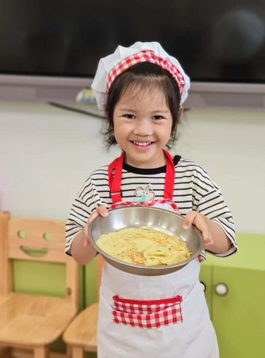 我们还学会了煎香喷喷的鸡蛋饼。