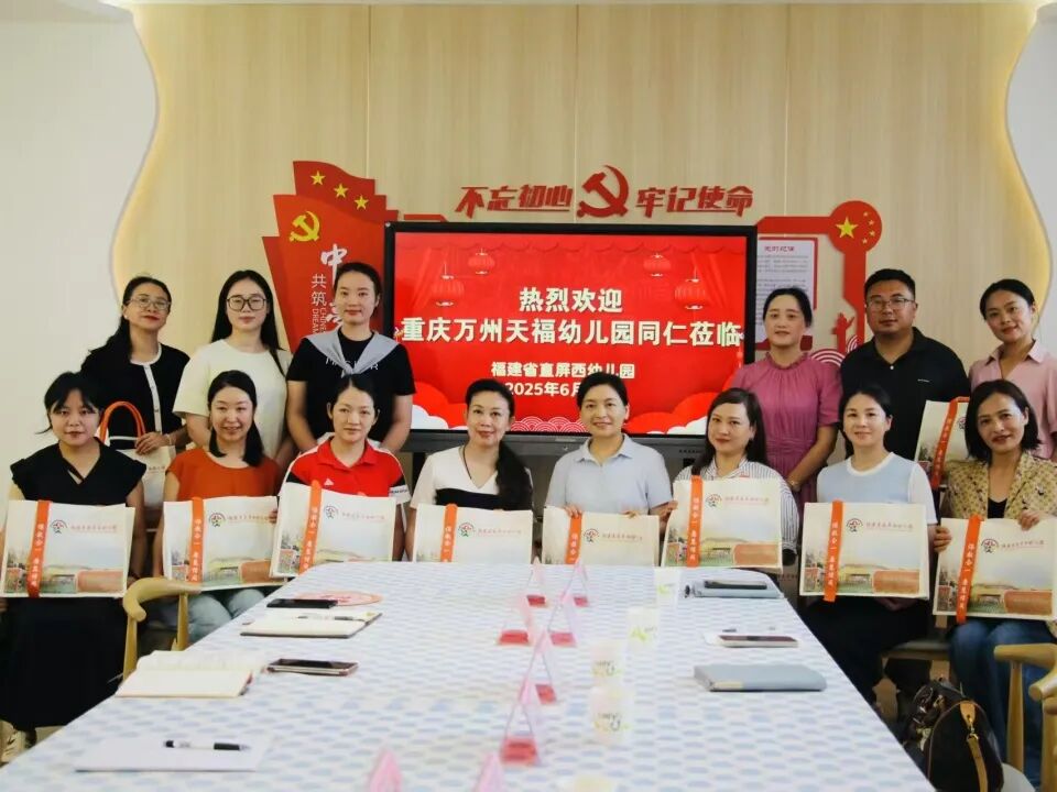 为贯彻福建省对口支援办会同重庆市万州区联合编制的《福建省“十四五”对口支援万州区合作实施方案》精神,福建省直屏西幼儿园与重庆万州区天福幼儿园结对共建,力求通过结对交流,促进双方共同进步,推动幼儿教育事业的均衡发展。2025年6月9日-13日,重庆万州区天福幼儿园一行12人来到福建省直屏西幼儿园,开启了一场结对共建的教育交流精彩之旅。