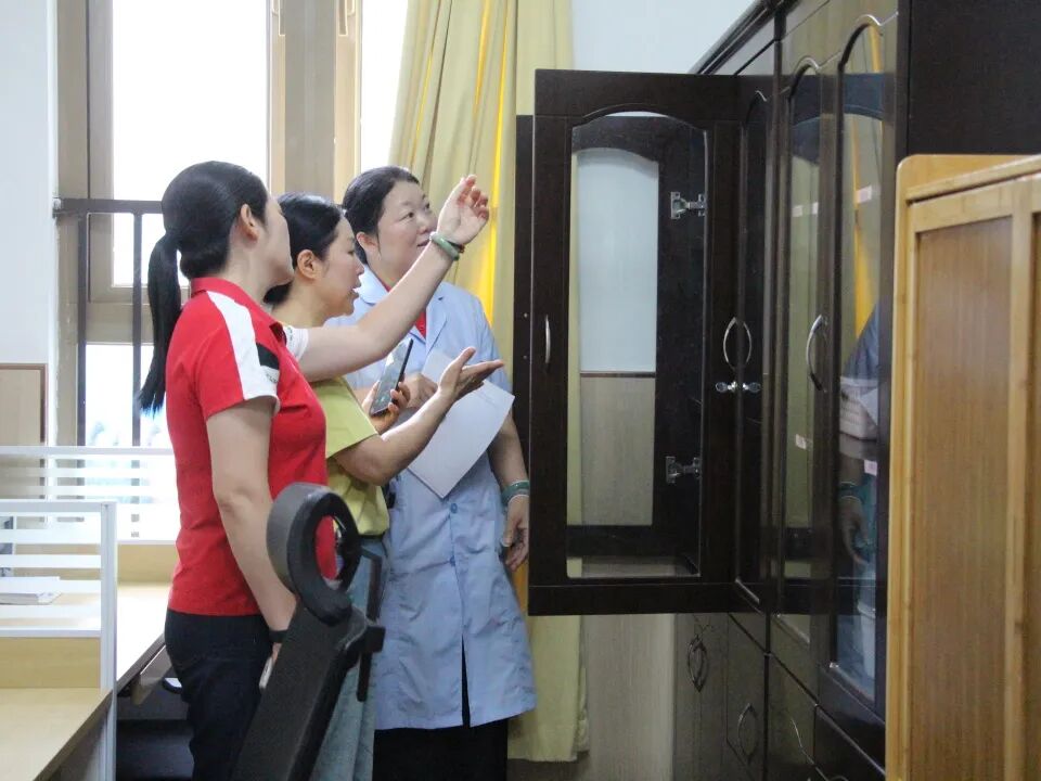 在雷青副园长带领下,天福幼儿园的老师还实地参观了医务室,查阅相关档案资料,在友好的互动答疑中对幼儿园健康监测和疾病预防等工作进行了全面的交流。