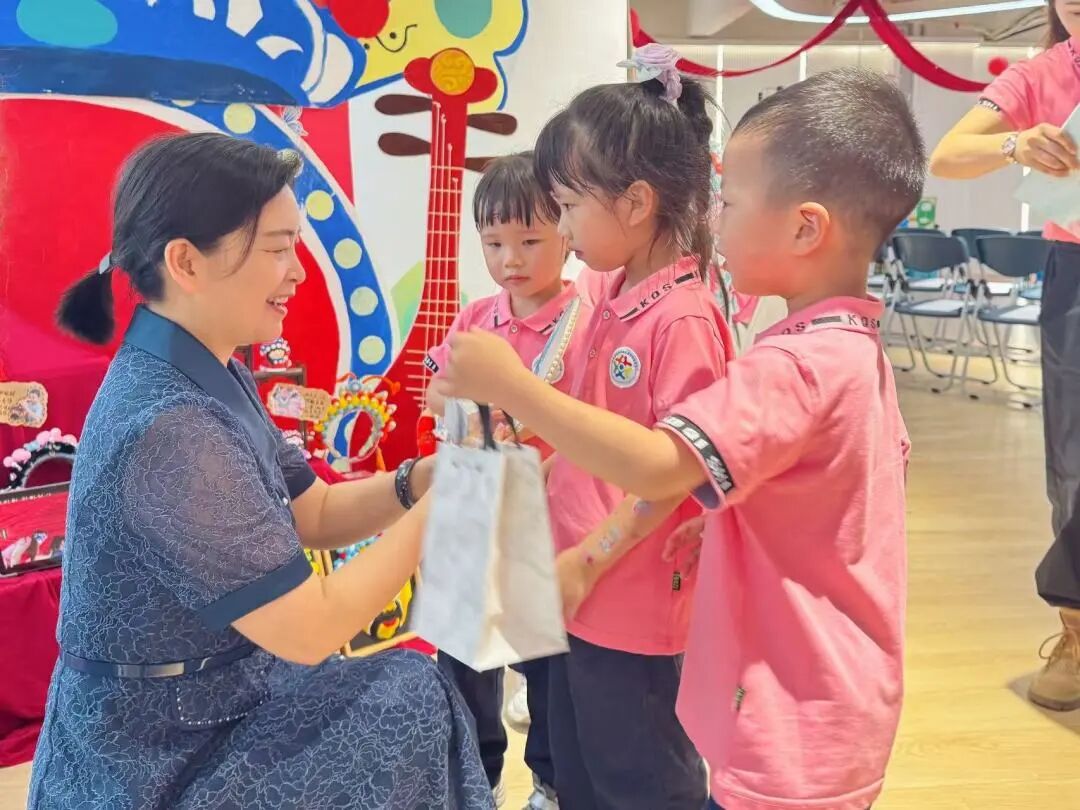 童心传闽韵,屏西萌娃们向客人老师纷纷献上亲手制作的礼物:漆扇、油纸伞、闽剧文创、非遗珍珠画......