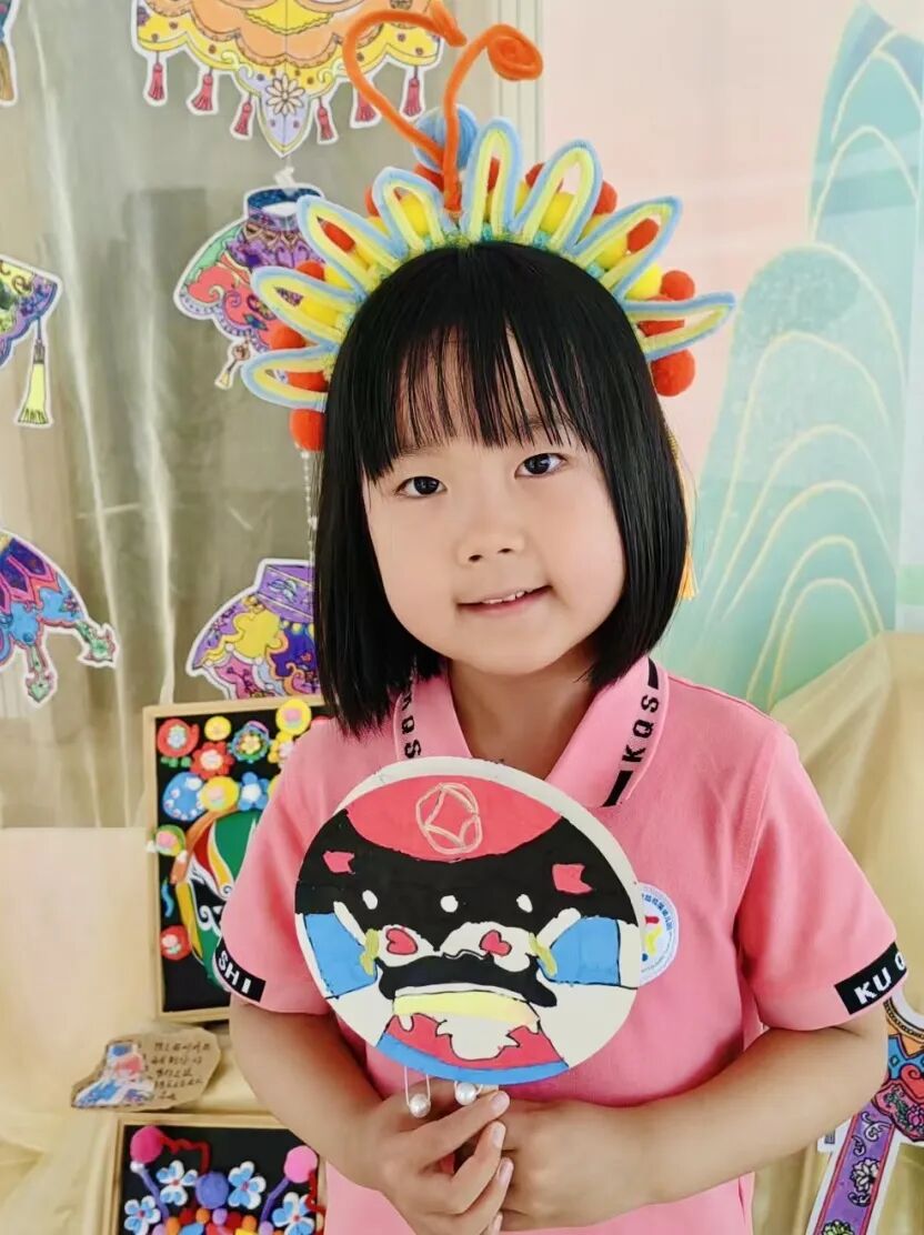 “园长老师你们看,这是我设计的孙悟空造型的脸谱”