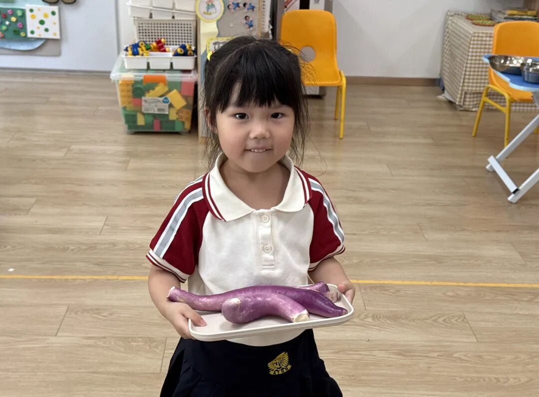 室外种植园,天福幼儿园的老师们欣喜地看到孩子们精心照料的茄子喜获丰收,纷纷为小园丁们的劳动成果点赞喝彩。