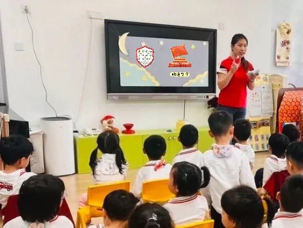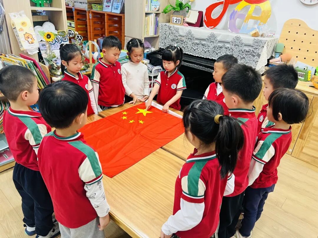 老师告诉我们,国旗是国家的标志,就像我们的名字一样重要,我们要一起保护它!
