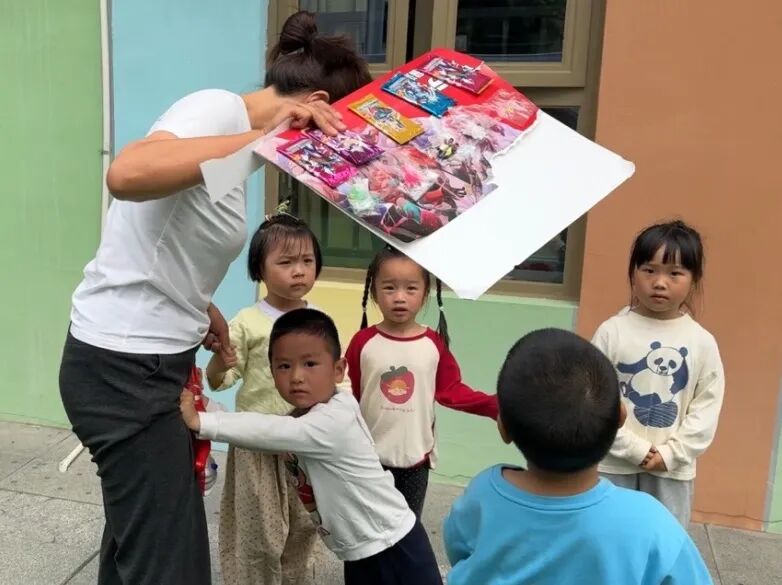 玩具的诱惑力是巨大的,有部分幼儿上当受骗,跟着“陌生人”去领礼物了。