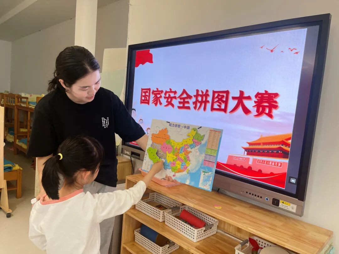 每个小朋友都是国家安全的小小守护者,他们在国家安全拼图大赛中,不仅认识了中国地图的轮廓,还熟悉了国徽的庄严、国旗的鲜艳,心中种下了守护国家的种子。