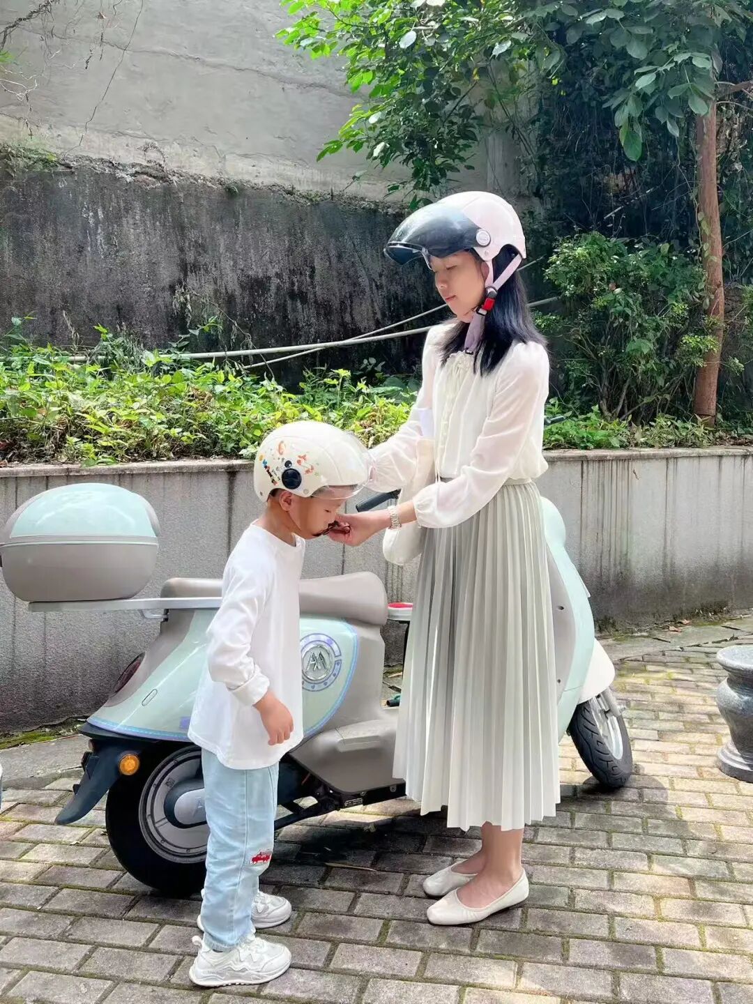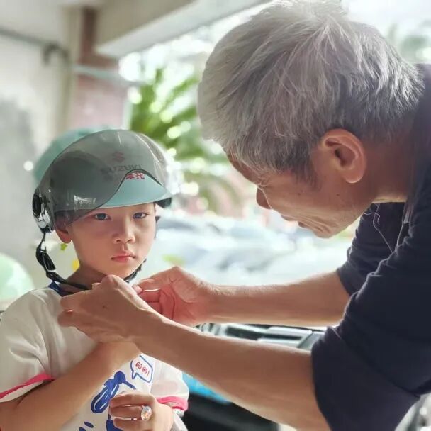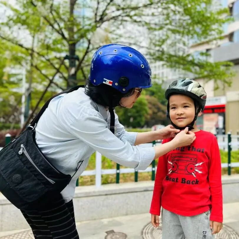 戴头盔要牢记:卡扣扣好,绳拉紧。这是老师教我的口诀。