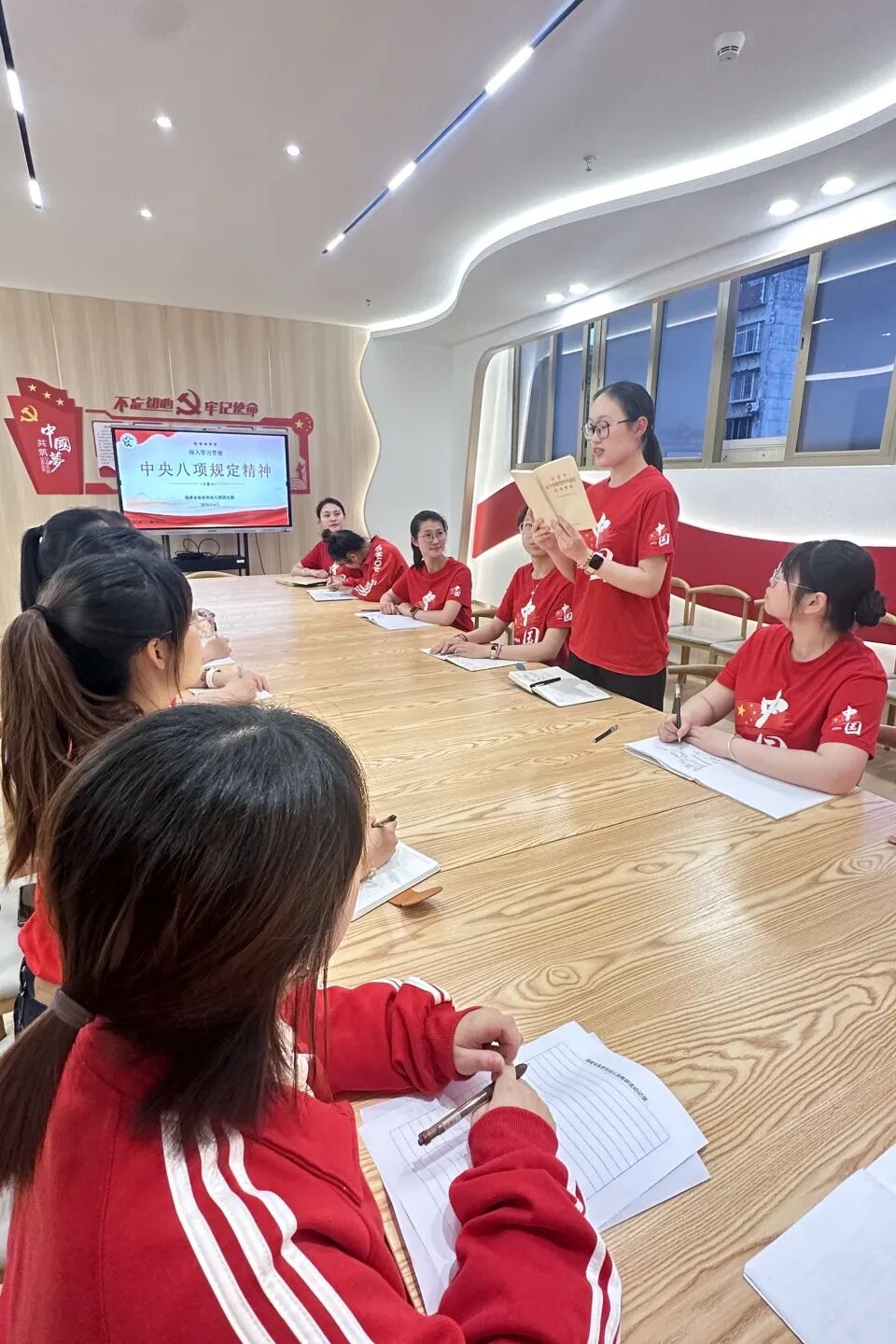为全面落实习近平总书记关于深入推进中央八项规定精神学习教育的重要讲话与指示要求,团支部组织青年团员教师开展深入贯彻中央八项规定精神学习。让“精简、清廉”的理念落到心间,化为新时代青年教师的担当。