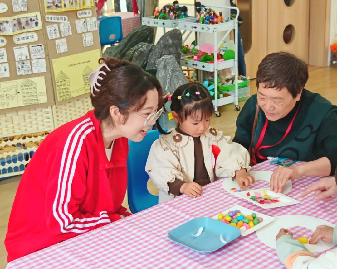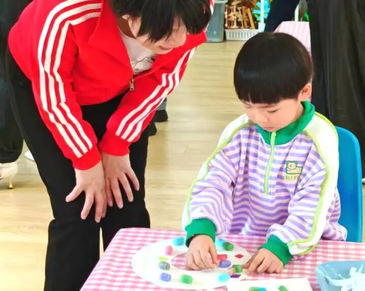 白卡纸裁出甜甜圈,玉米粒洒作糖粒。孩子们的小手高举,圈住整个春天的甜。
