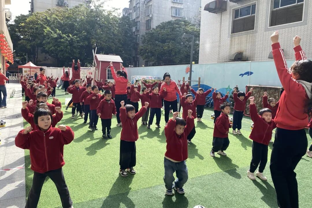 教师们带领幼儿开展活力四射的早操观摩,充分展现青年的蓬勃活力与团队协作精神,以奋进之姿践行五四精神。
