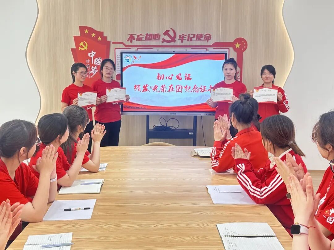 入团是春芽破土时仰望的第一缕晨光,是星火初燃的赤诚宣言;离团是秋实满枝后回望的万里征程,是薪火相传的庄严接力。离团教师郑重地领取 “光荣在团” 纪念证书,纷纷表示要继续积极向党组织靠拢。