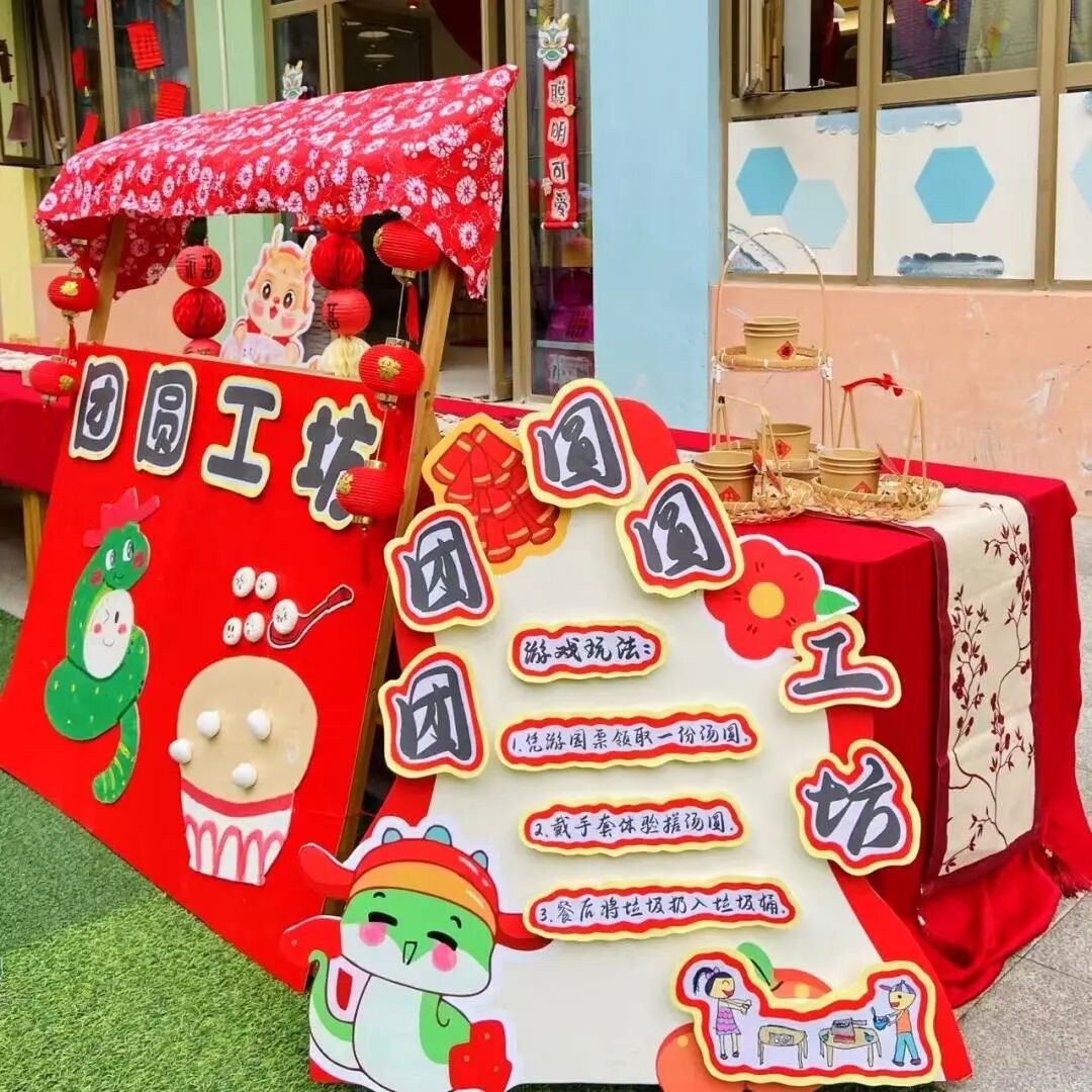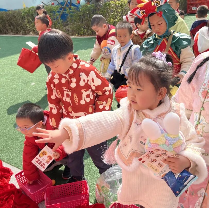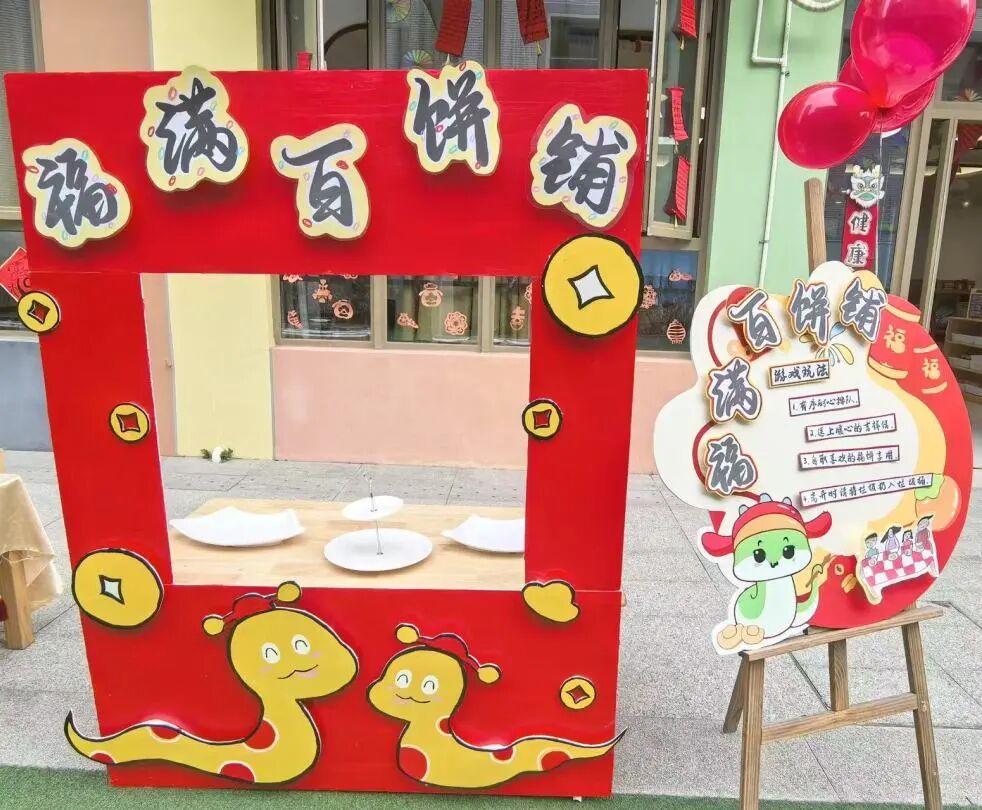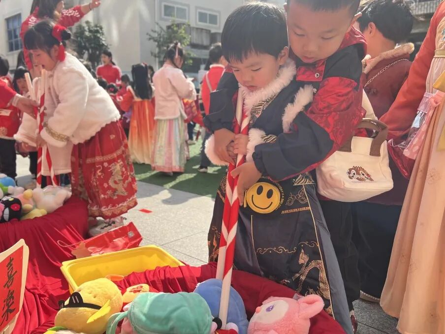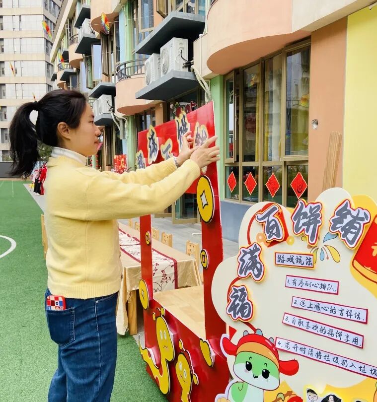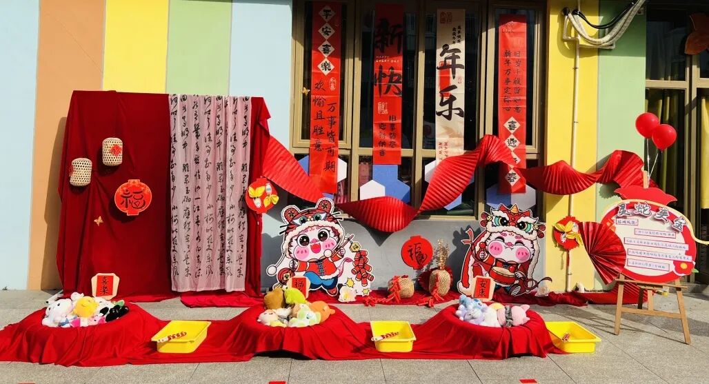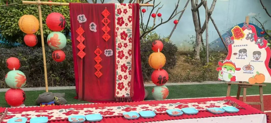 当清晨第一缕阳光洒下,幼儿园已焕然新生,变身新春庙会。