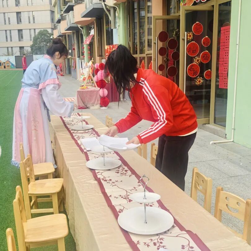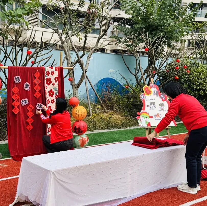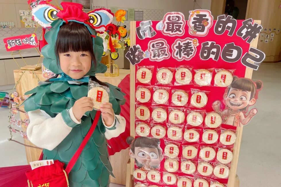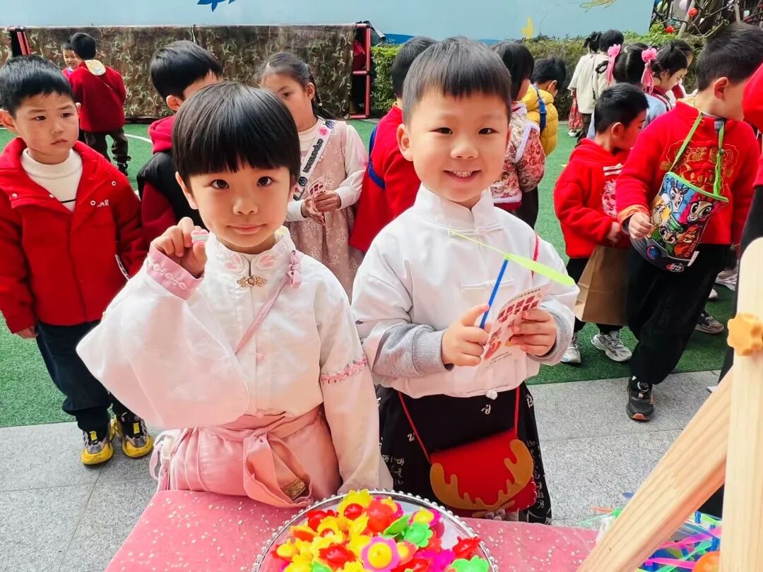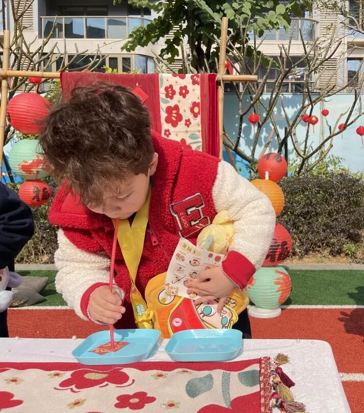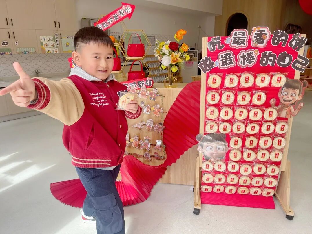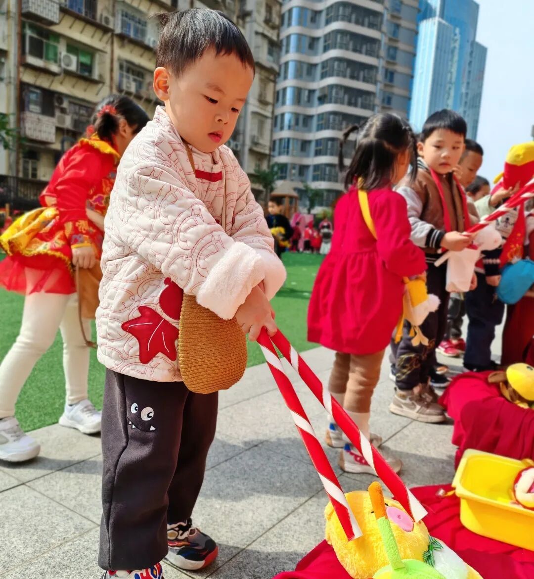 当清晨第一缕阳光洒下,幼儿园已焕然新生,变身新春庙会。