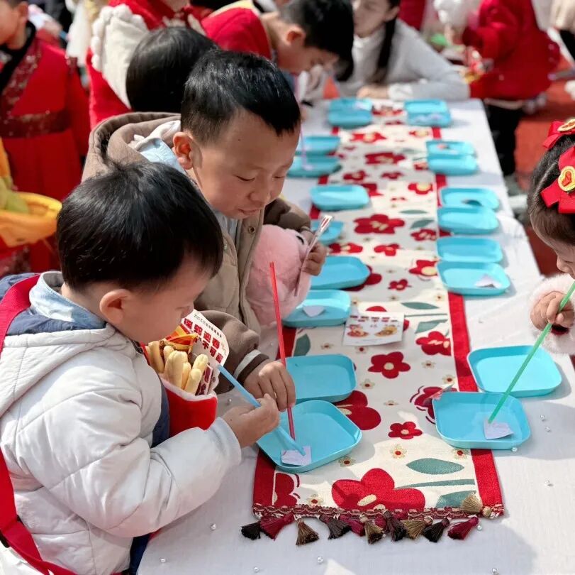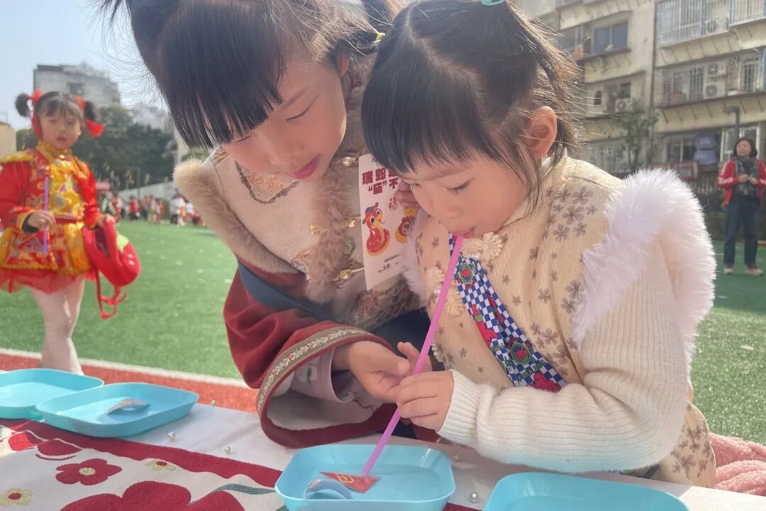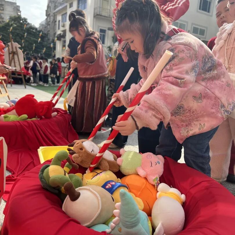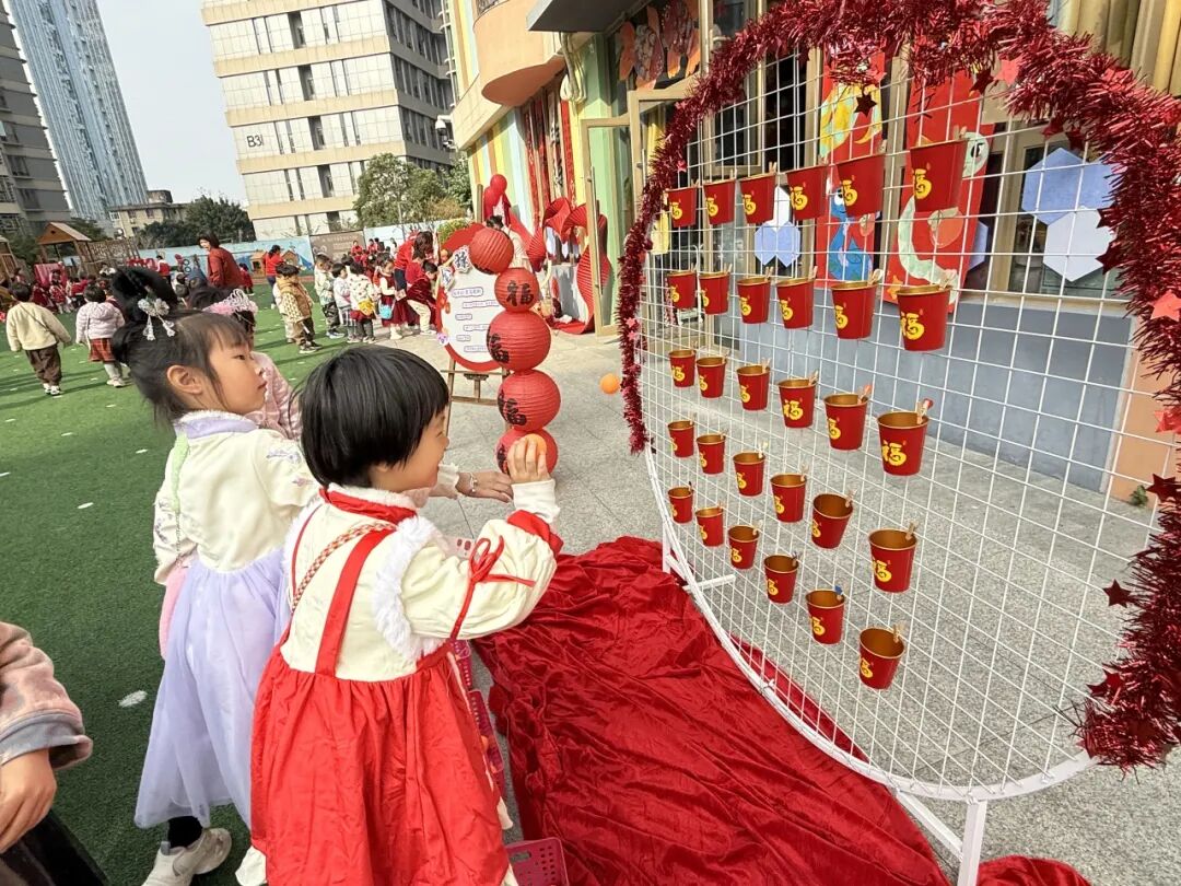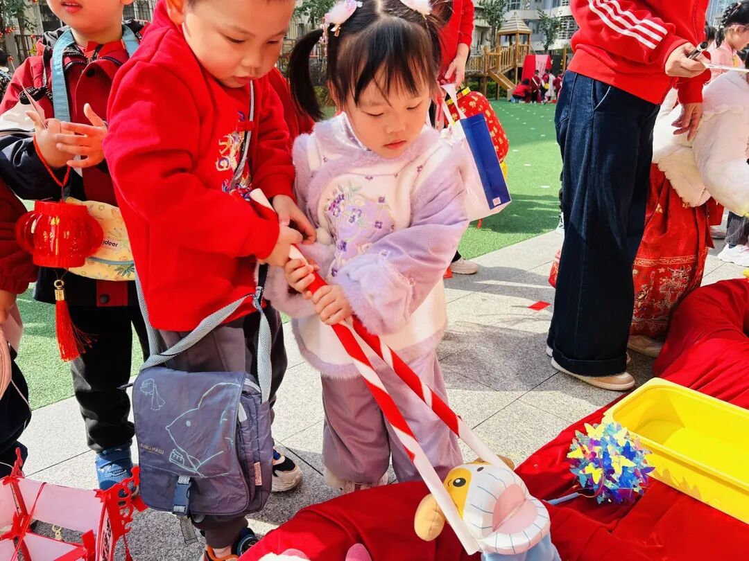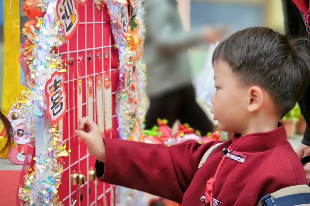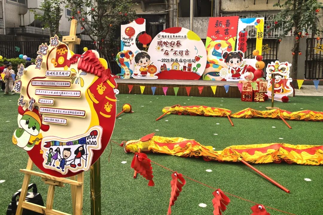 当清晨第一缕阳光洒下,幼儿园已焕然新生,变身新春庙会。