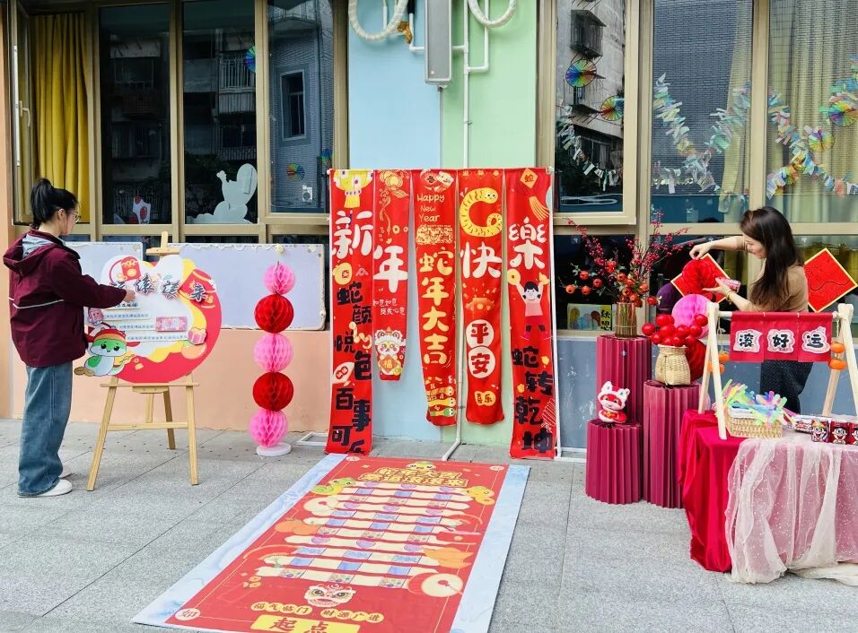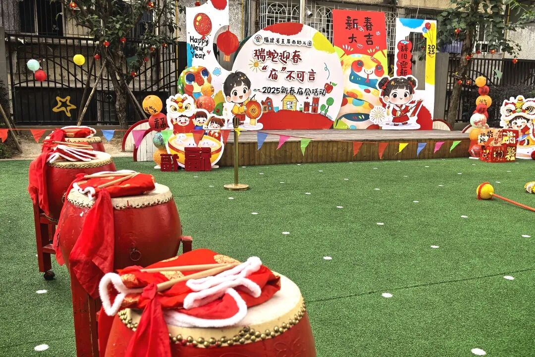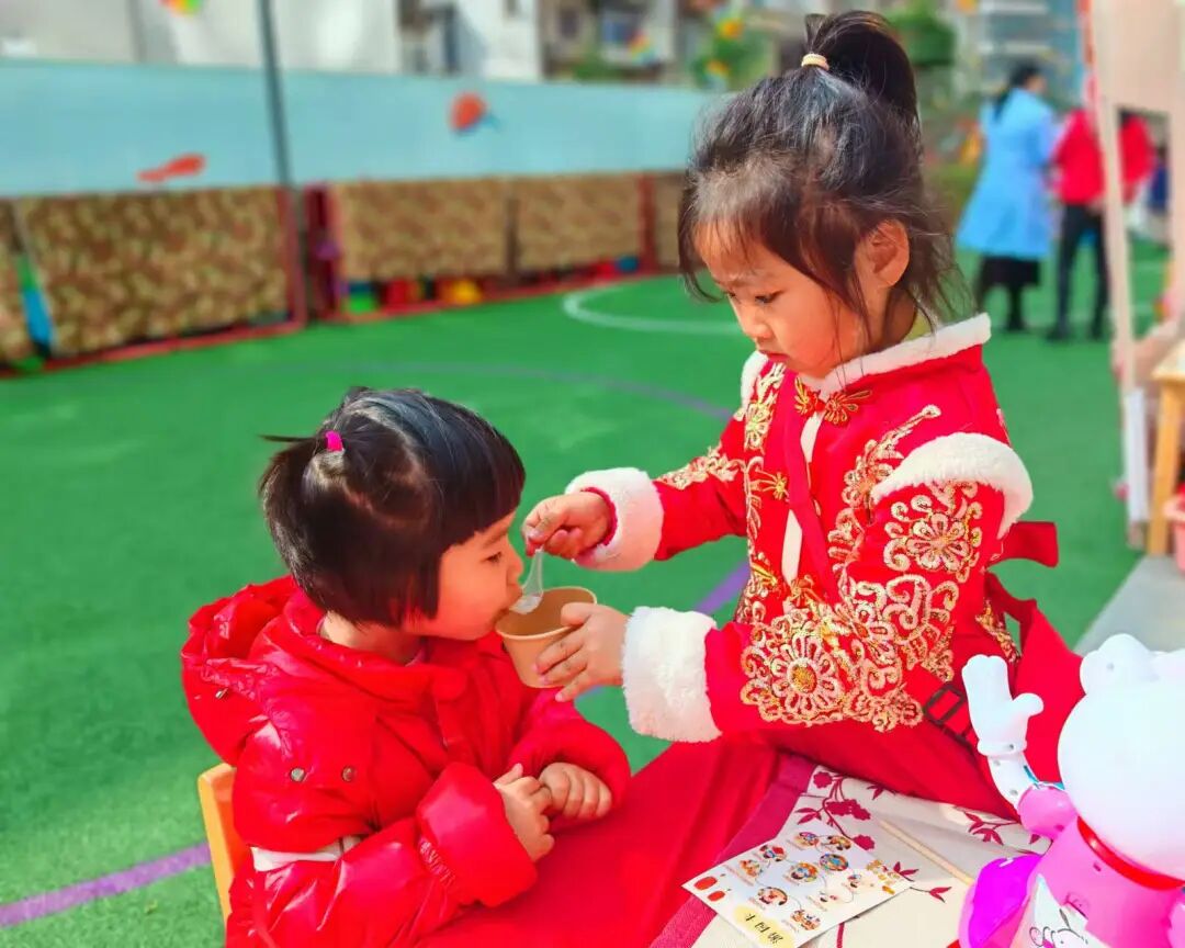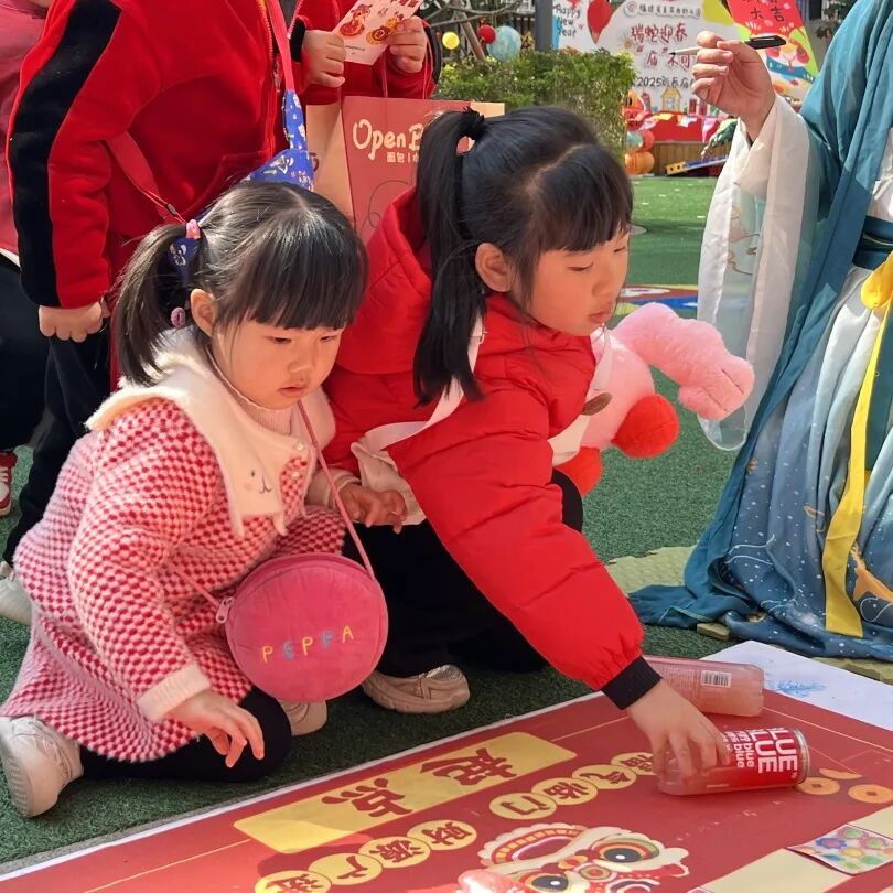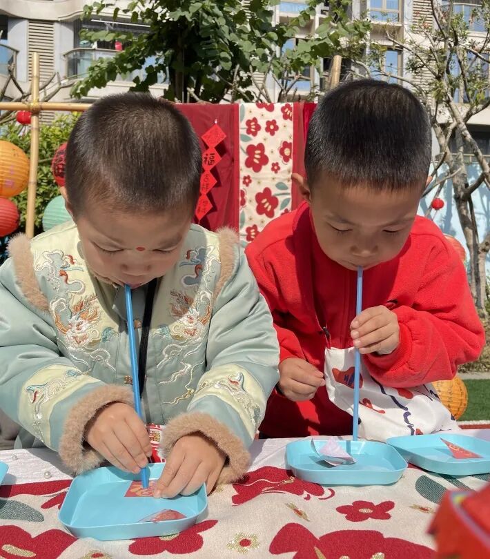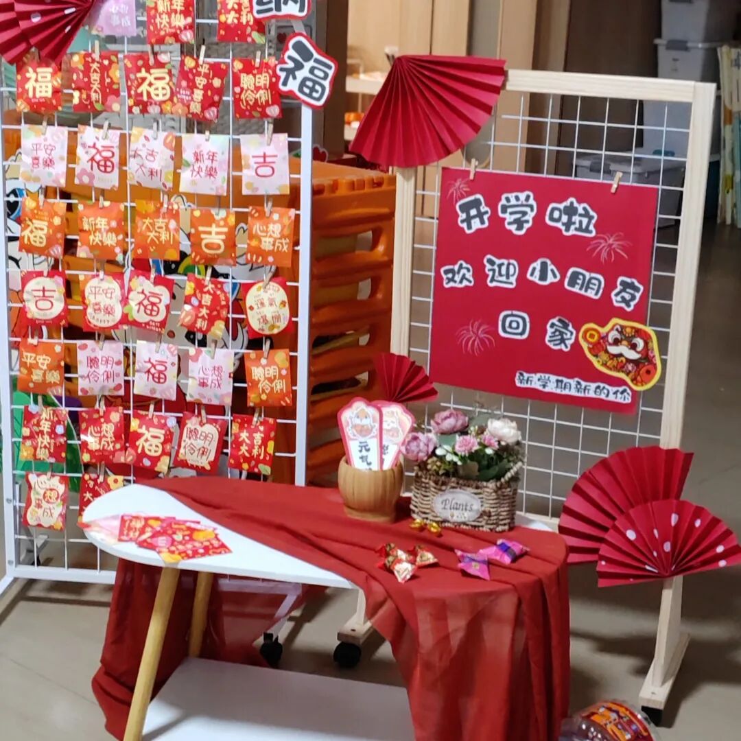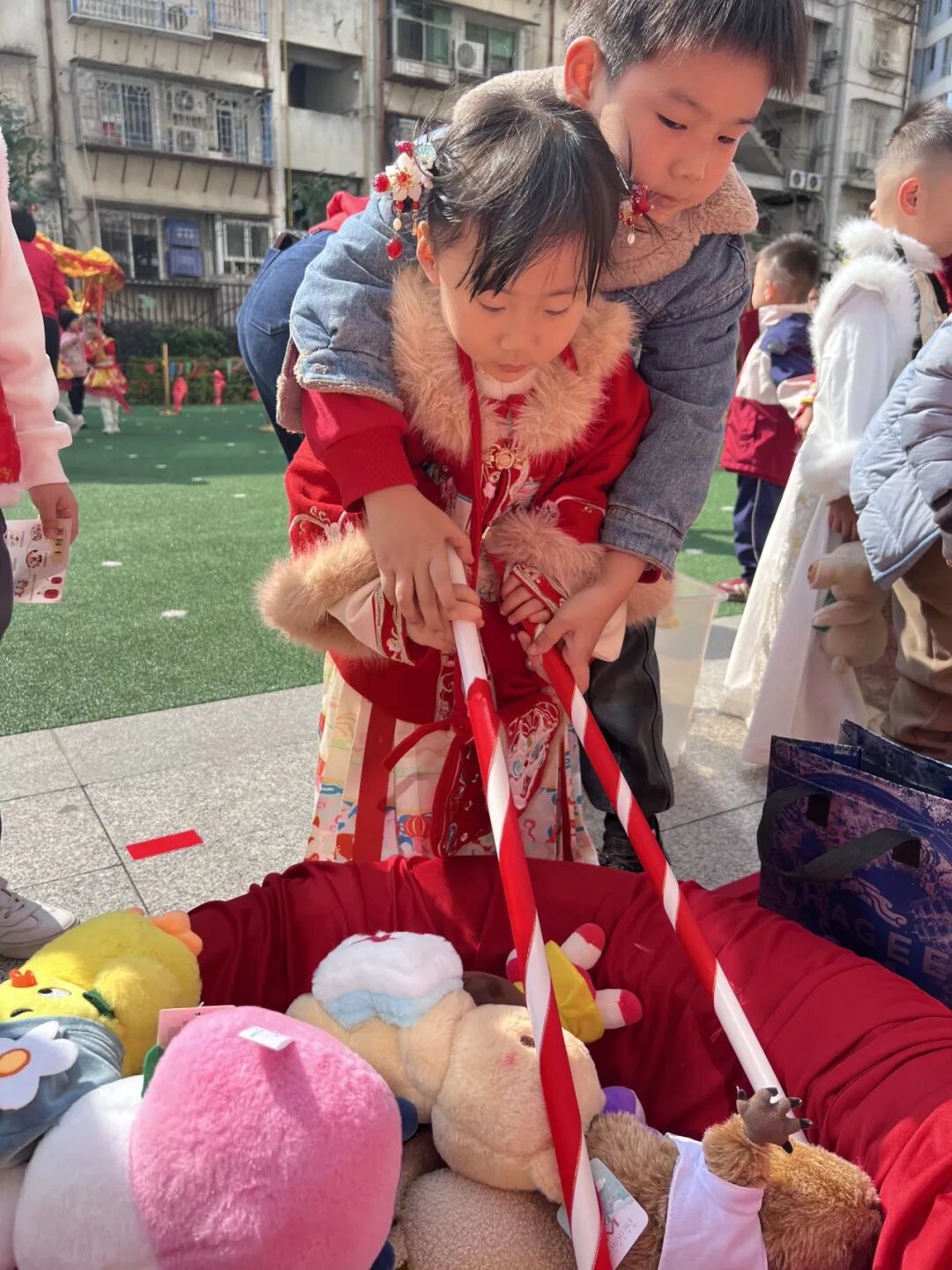 当清晨第一缕阳光洒下,幼儿园已焕然新生,变身新春庙会。
