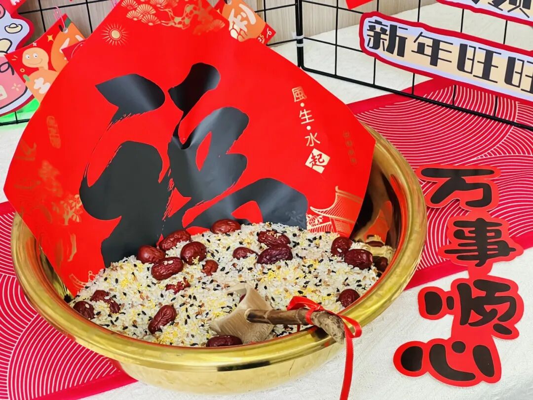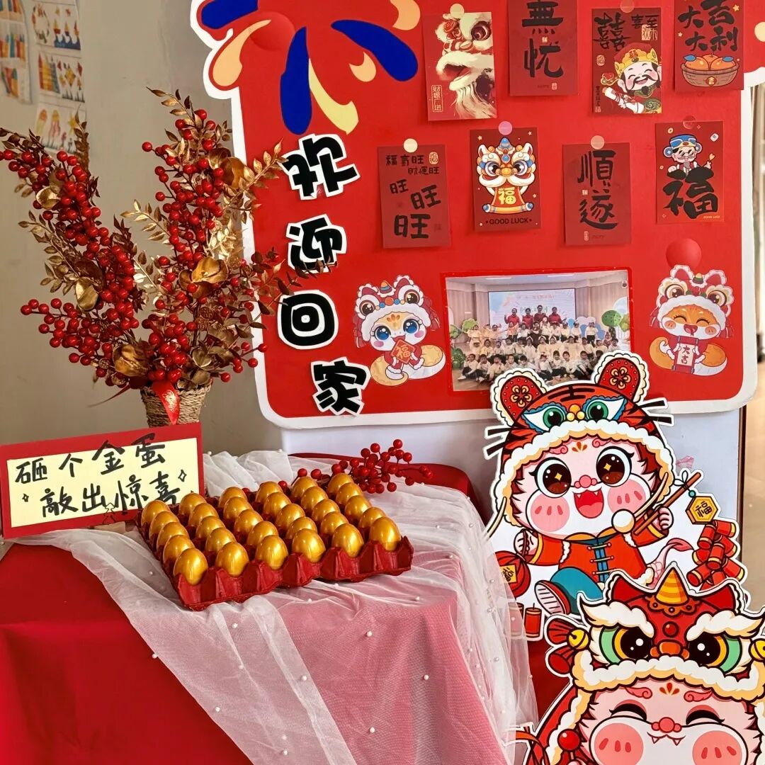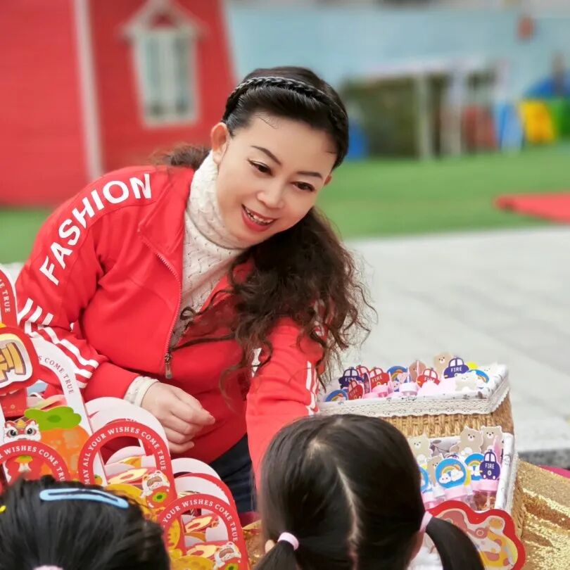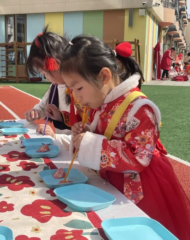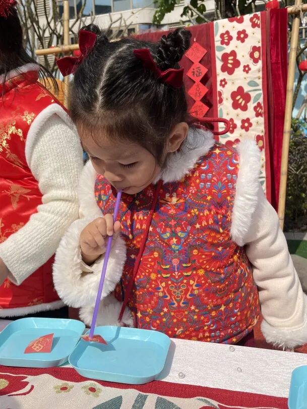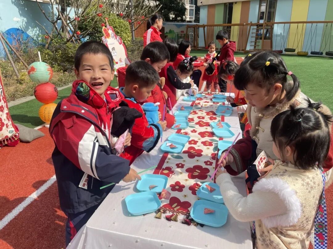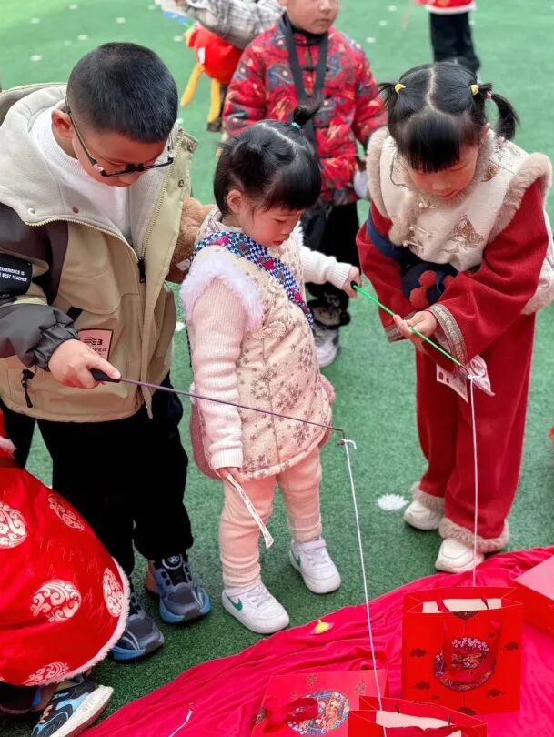 当清晨第一缕阳光洒下,幼儿园已焕然新生,变身新春庙会。