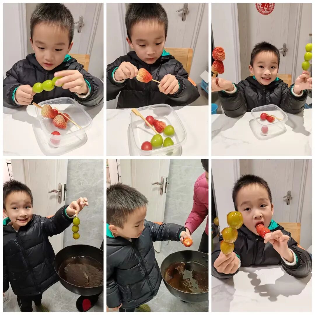 用草莓和葡萄做出的糖葫芦,像不像彩色的灯笼?