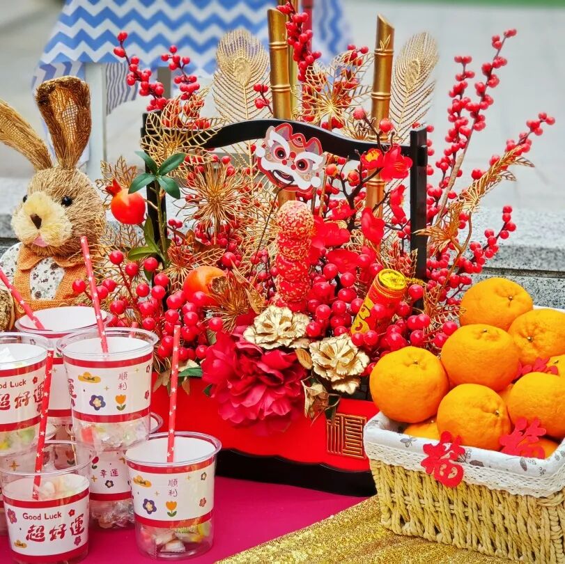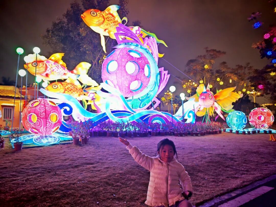 草丛垂落玲琅满目的花灯,转角藏着热闹的锣鼓,摊位备好了福纸福球福袋,连空气都飘着淡淡的糯米香......