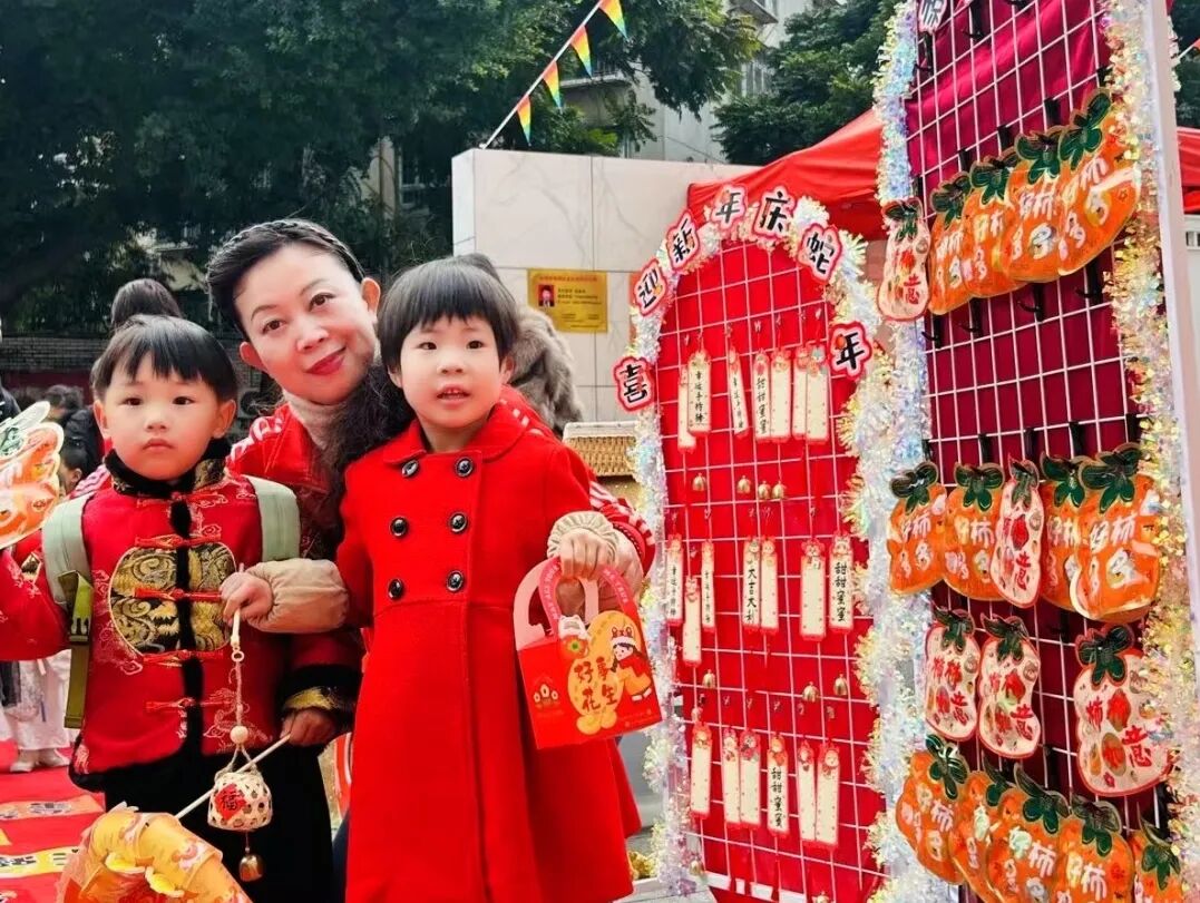 “看!我抽到'甜甜蜜蜜'福签”,童言稚语伴着晨风飞扬。