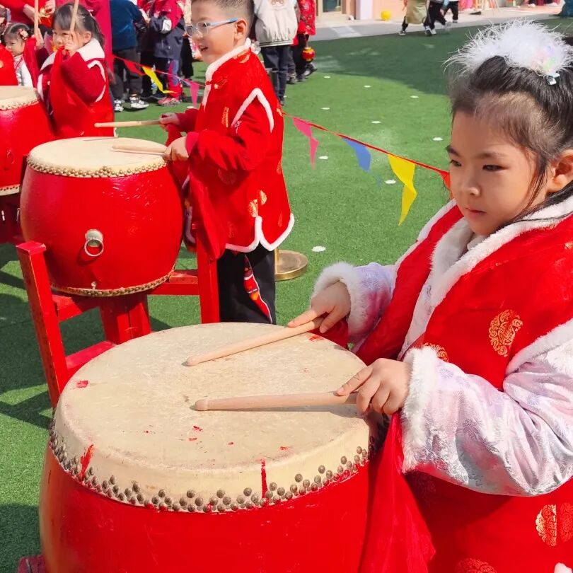 "咚咚锵——"随着《中华鼓娃》激越的节奏,哥哥姐姐们扬起系着红绸的鼓槌,奏响庙会的第一曲。