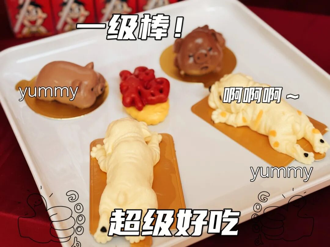 新年自助餐里,我想要吃甜丝丝的蛋糕和卡通面包。