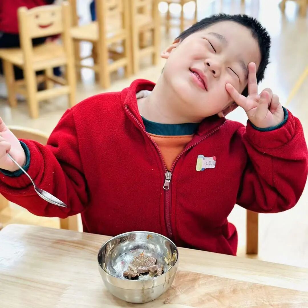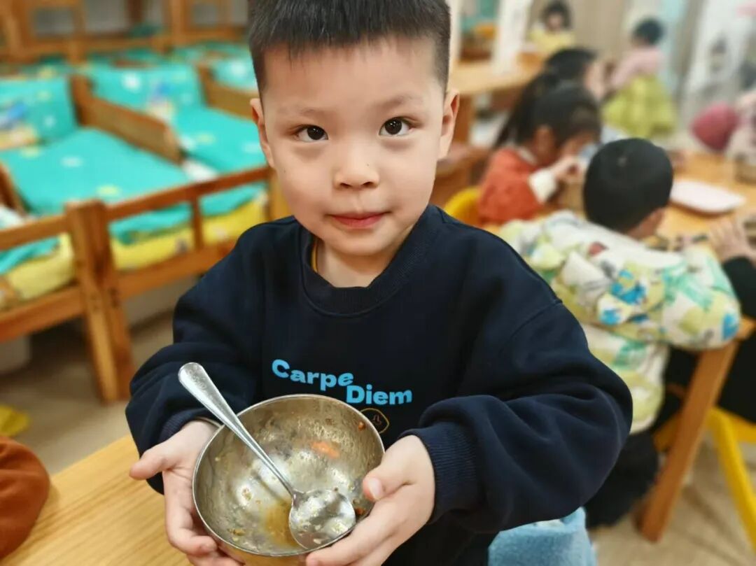 餐盘亮得像镜子,宝贝们都是超厉害的“光盘小达人”,一起当守护粮食小卫士!