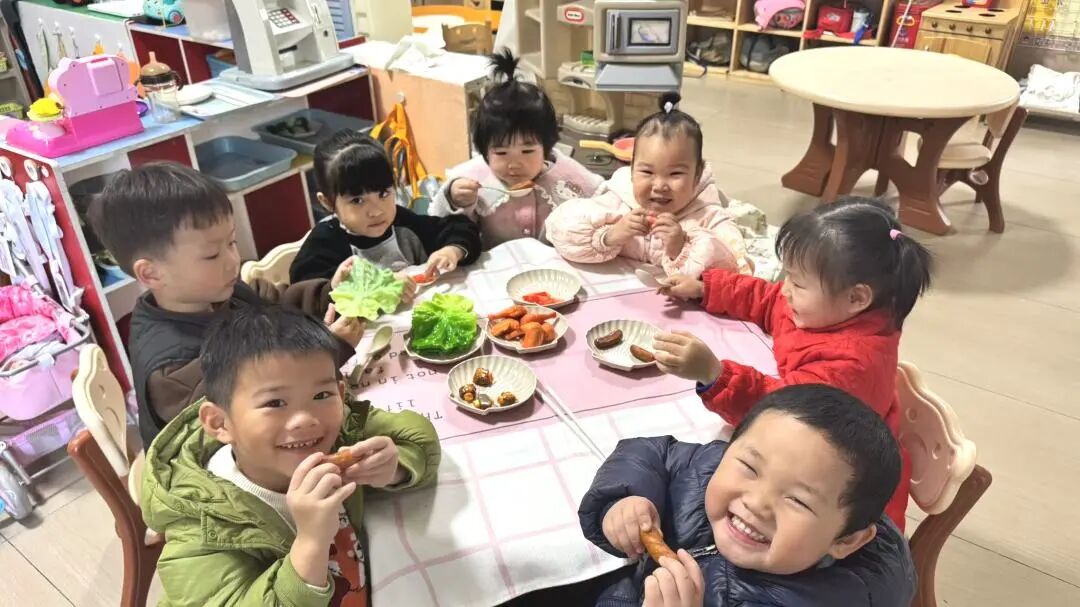 小班的萌宝也在期待新年美食大餐。瞧!他们你一言我一语,开心地分享自己最爱的美食。