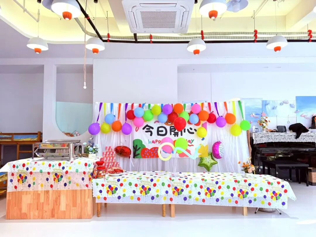 五颜六色的气球蹦蹦跳跳地落在了桌面上,叽叽喳喳地哼着节日的小曲。