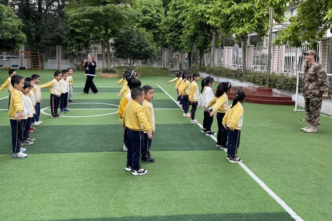 “小朋友们,你们喜欢解放军吗?将来想不想当一名解放军?”“想!”----今天,为了培养孩子们的爱国主义精神,增强大家的国防意识和综合素质,我们为大家带来了一堂以“童心向党,强国有我”为主题的军事体能课程。从一开始,大家就都非常地配合投入,对站军姿、队列、敬礼的每个环节都充满了好奇和学习的欲望。看来对孩子们来说,解放军确实是神圣而令人向往的。尽管如此,给小朋友们上课还是非常具有挑战性,也非常考验耐性,我差点喊哑了嗓子,在此不得不佩服老师们,确实非常不容易。